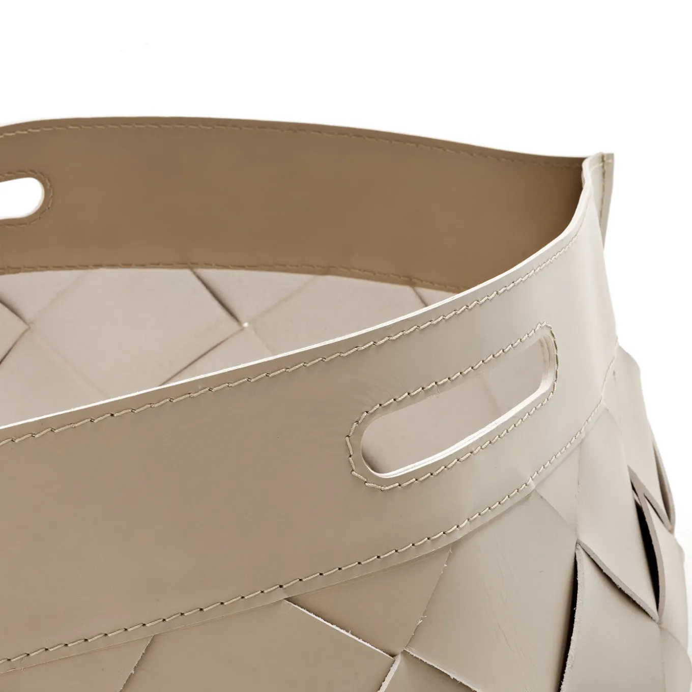Disegnato da Massimo Castagna, questo piccolo cestino emana una delicata raffinatezza nella sua silhouette raffinata e nel suo colore beige chiaro. Squisitamente intrecciato a mano in pelle di sella, è arricchito da manici e funzionerà idealmente come piccolo portariviste, beauty case o anche come pezzo decorativo da esporre. Altri colori sono disponibili su richiesta al Concierge. Se i prodotti sono collocati completamente all’esterno, si consiglia l’acquisto di copriletto a prezzo maggiorato. Per ulteriori informazioni e opzioni, contattare il Concierge.