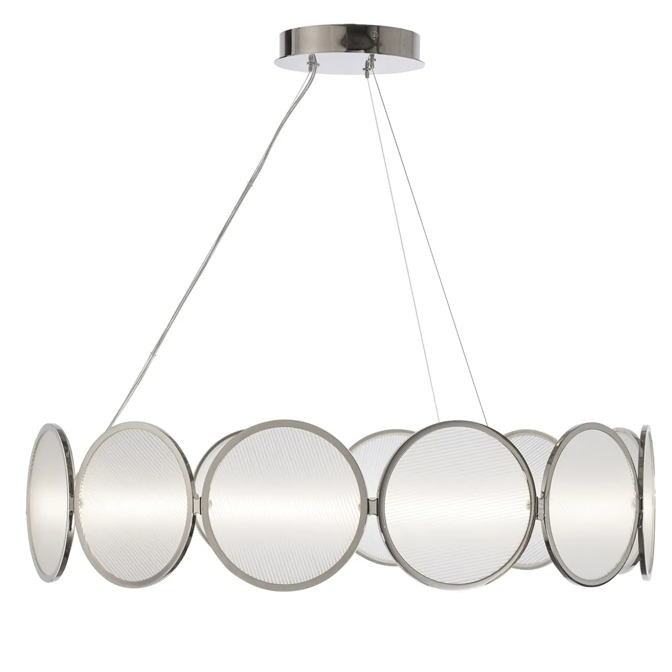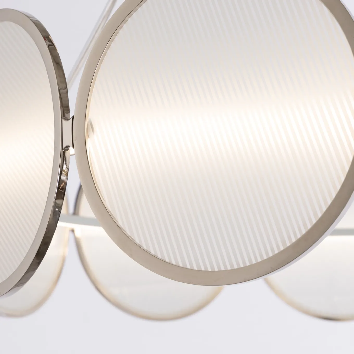 Il minimalismo nelle forme e la leggerezza del design. Sospesa in aria quasi per magia, questa lampada combina design con raffinatezza tecnica. La versione per gli Stati Uniti presenta un ulteriore piatto rotondo nella stessa finitura del resto della struttura con un diametro di 12 cm (4,72”) per coprire il j-box. Dimmerabile su richiesta.