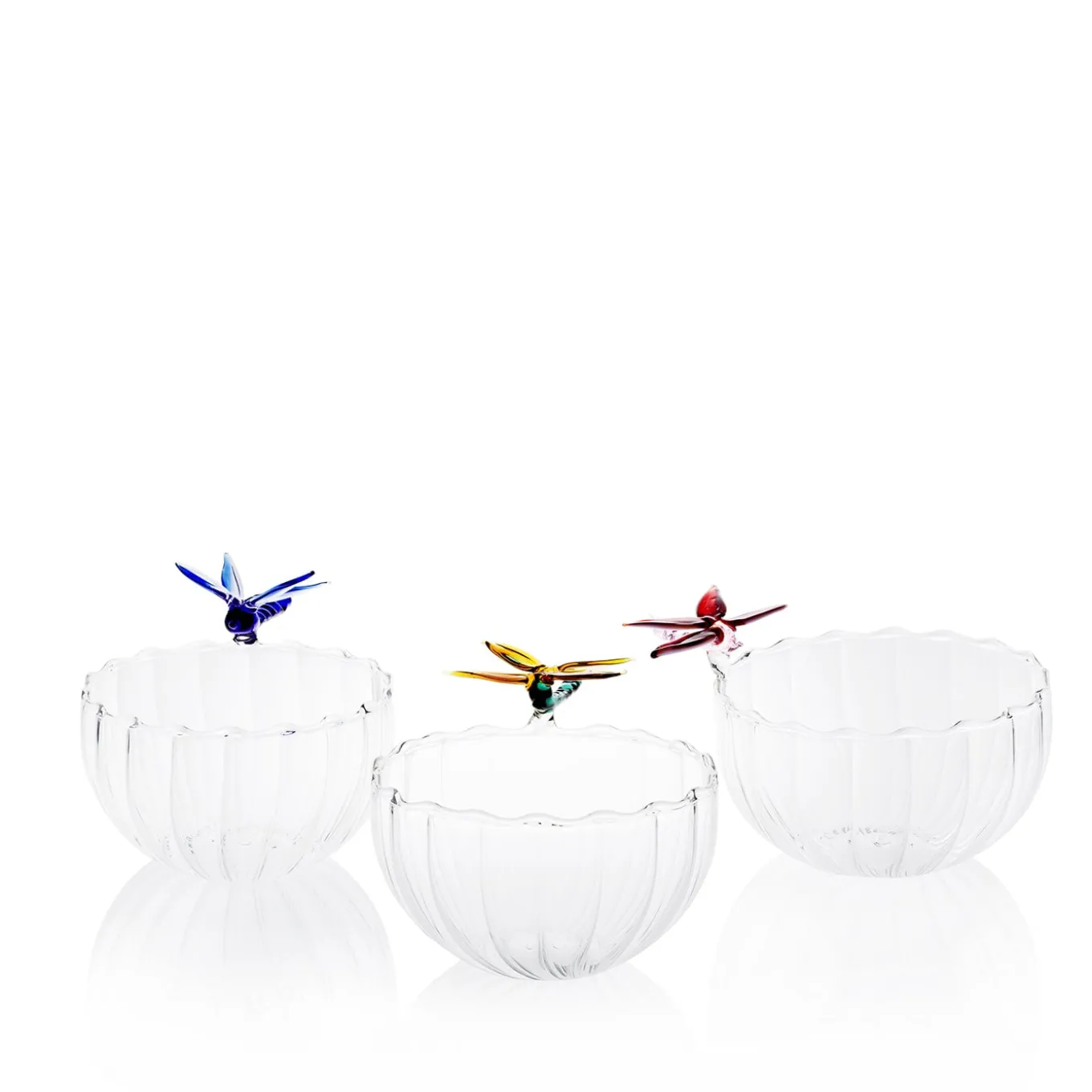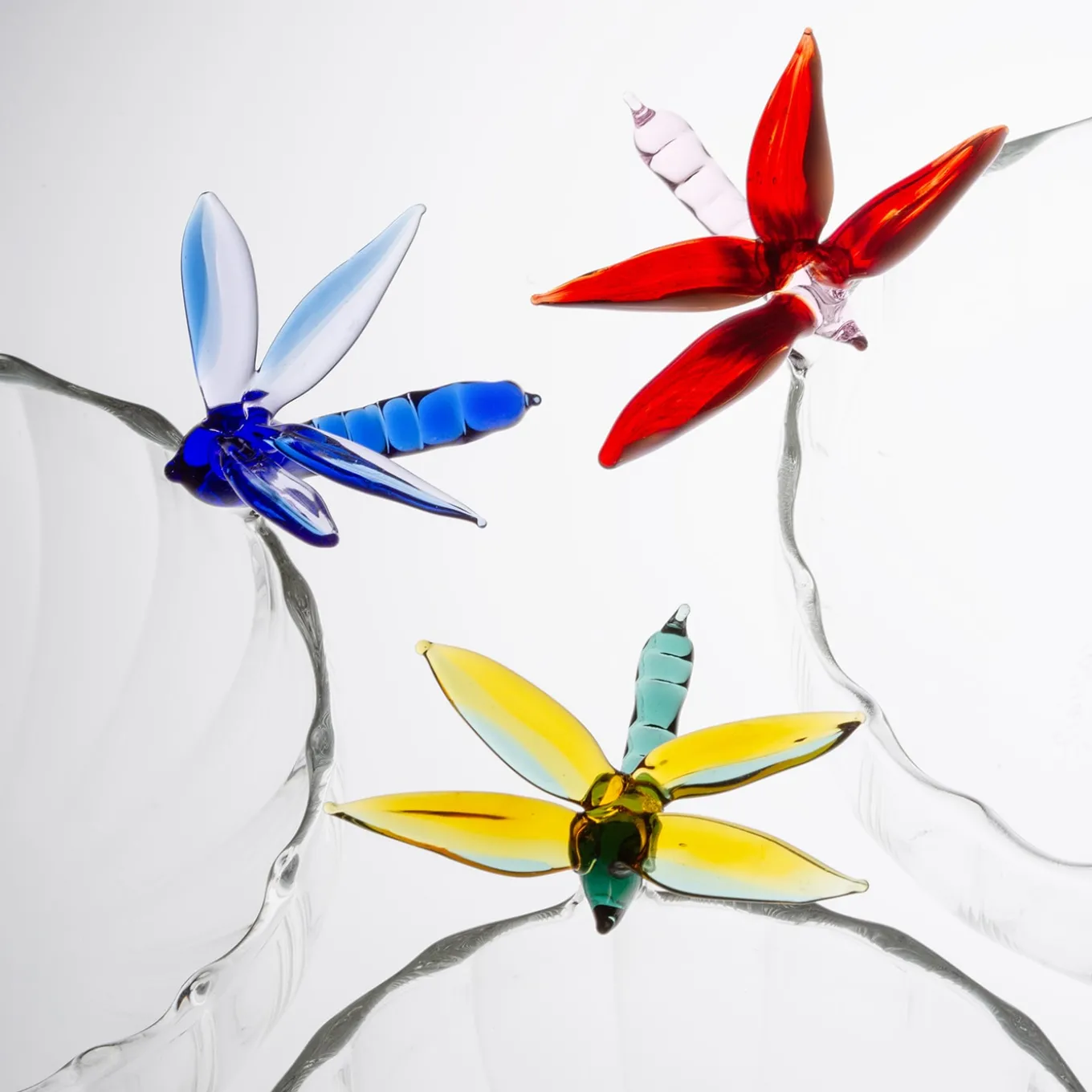 Questa ciotola meticolosamente lavorata a mano è realizzata in vetro trasparente e presenta una libellula colorata delicatamente posizionata sul bordo. Creata in collaborazione con Summerill & Bishop London, la ciotola simboleggia l’equilibrio e la bellezza di vivere pienamente la vita, riflettendo lo spirito della libellula. Disponibile nei colori blu intenso, bordeaux e rosa, verde e giallo sorbetto, ogni ciotola è un’opera d’arte unica realizzata da artigiani veneziani, che mette in mostra l’esperienza italiana nella lavorazione del vetro.