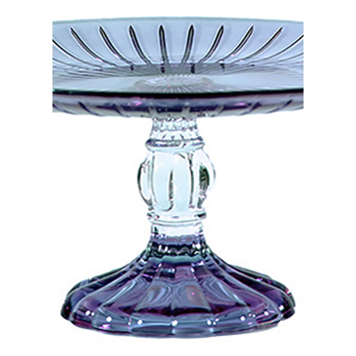 Questa elegante alzata per dolci infonderà un fascino magico in un ambiente contemporaneo monocromatico. Il suo corpo in vetro comprende uno stelo chiaro che si erge da una base pieghettata ed è collegato al vassoio piatto e scanalato, entrambi accomunati da una sofisticata tonalità di blu ravvivata da una lusinghiera finitura iridescente.