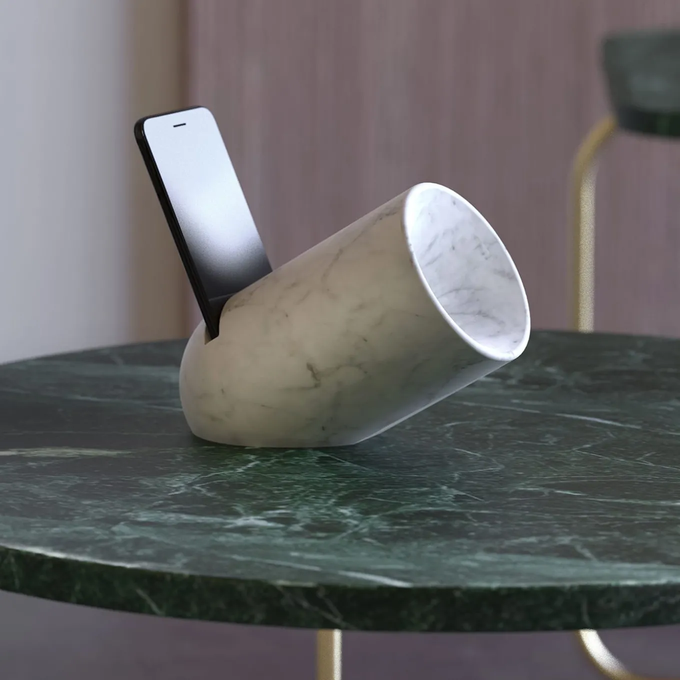 L’amplificatore passivo Ovo è splendidamente realizzato in marmo bianco di Carrara e aggiunge un tocco decorativo alla camera da letto, alla cucina o al soggiorno. La sua elegante silhouette monoblocco è dotata di un alloggiamento integrato per un telefono cellulare: non è necessario collegarlo, per un modo rapido, semplice e senza problemi di riempire la stanza con la musica.