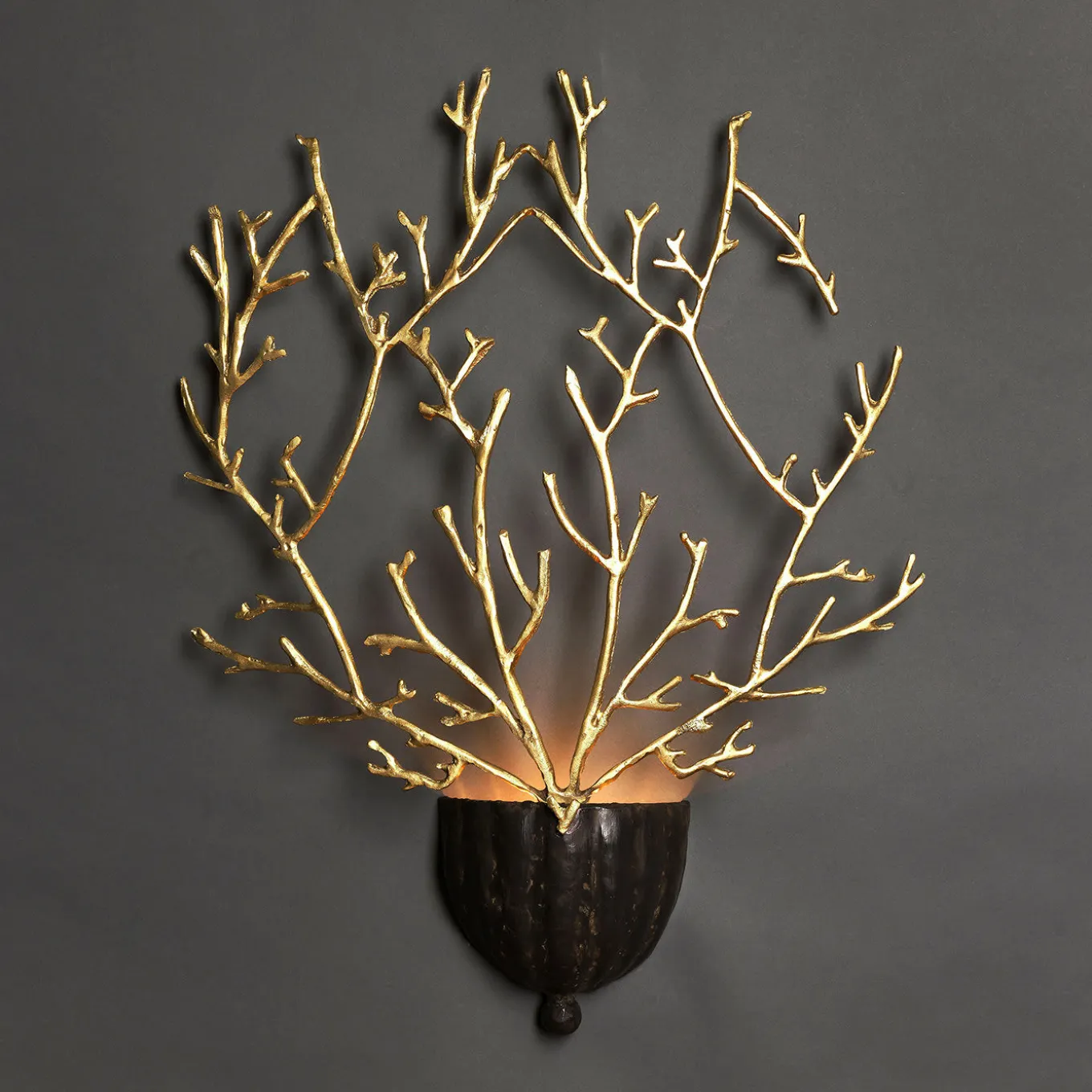 Questa splendida applique, che prende il nome dalla parola italiana che indica i coralli, evoca queste creature marine nella texture organica dei rami che ne formano la silhouette. Il corpo leggero è realizzato in ottone e riflette la luce delle due lampadine LED G9 posizionate all’interno della semicupola in ferro che sostiene il pezzo. Un elegante gioco di luci e ombre, questo superbo oggetto d’arredo funzionale farà la sua figura sia negli interni tradizionali che in quelli moderni.