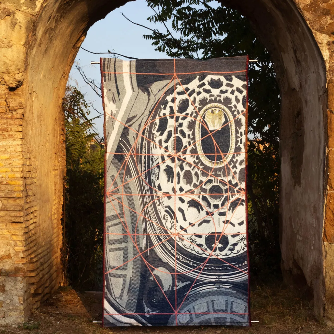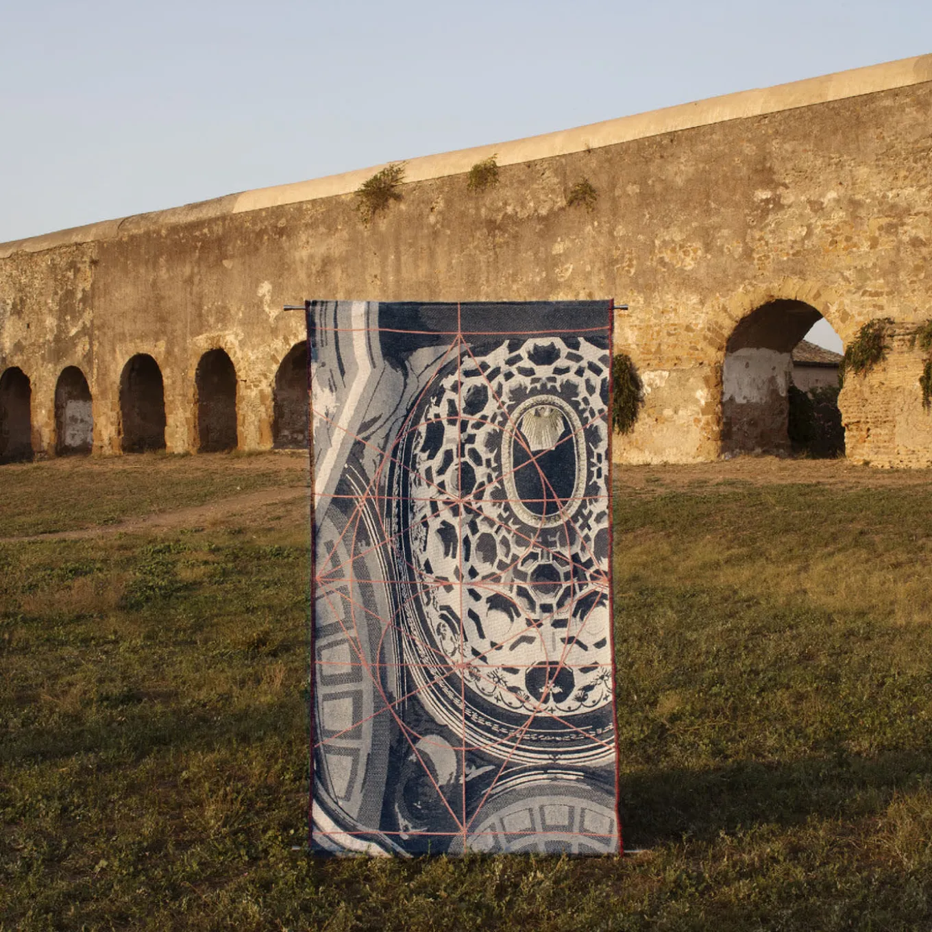 Elegante, moderno e versatile, l’arazzo bifacciale Borromini in blu petrolio e Neues Rot elettrizza l’essenza dell’architettura barocca. Realizzato in lino e cotone frisé con la tecnica Jacquard, è più di un tessuto: è una collisione di epoche. Il blu profondo e pensoso è interrotto da nitide linee rosse, creando un impulso di energia che reimmagina la cupola del Borromini in forma astratta.