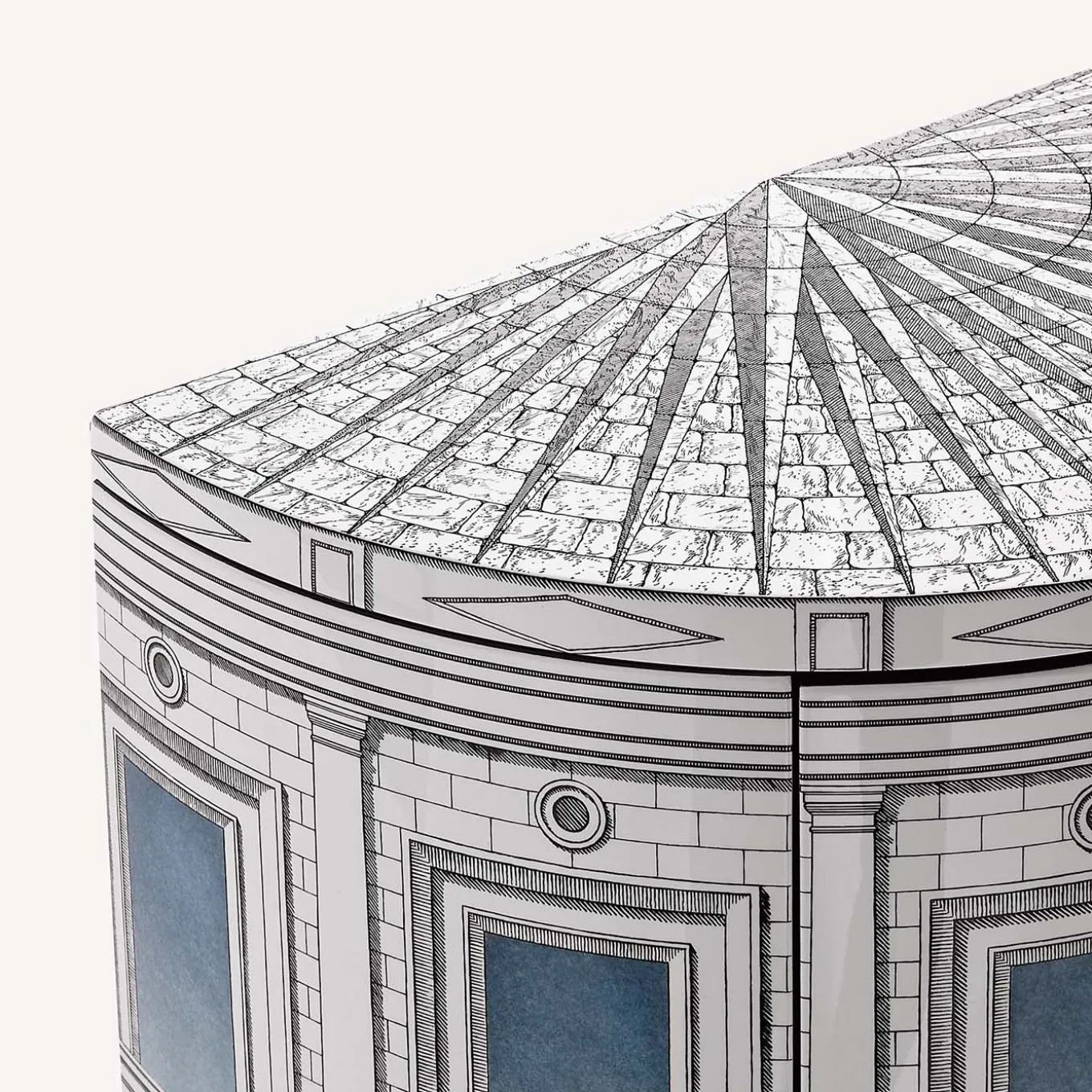 Questo mobile è realizzato in legno serigrafato, dipinto e laccato a mano. Ideale per portare in casa la forza creativa dell’immaginazione di Fornasetti, la sua decorazione architettonica crea un inquietante gioco di proporzioni. Eventuali piccole differenze tra creazioni simili sono il risultato di una lavorazione artigianale e testimoniano l’unicità di ogni prodotto.