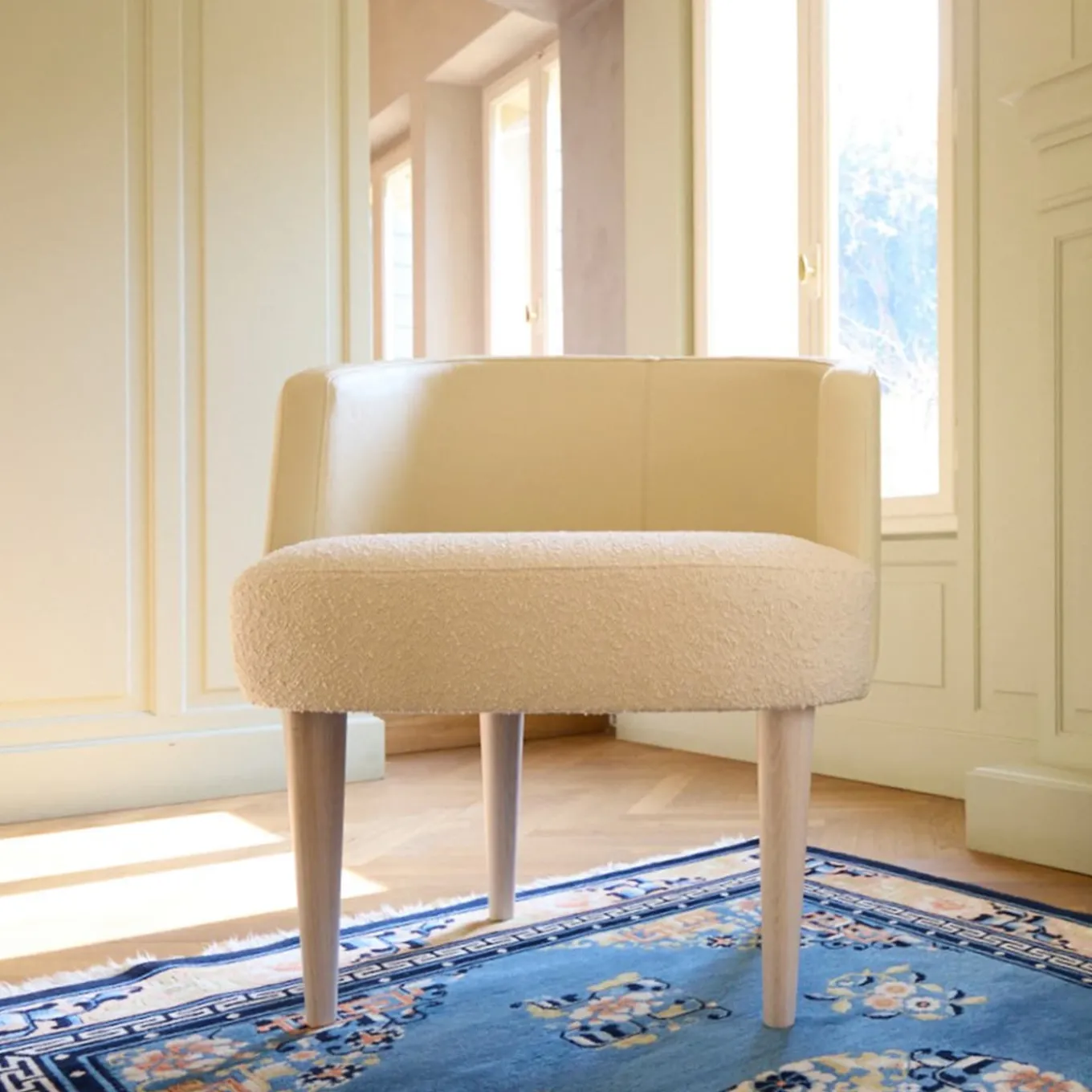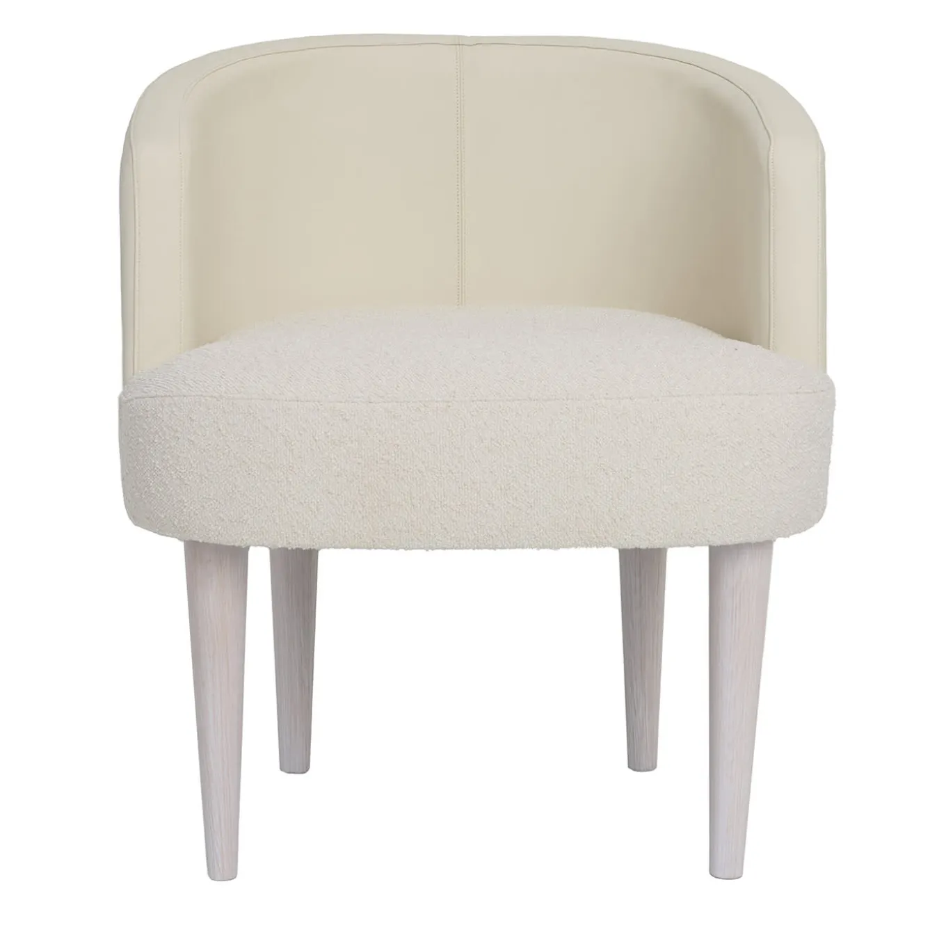 Linee pulite e avvolgenti tracciano la silhouette armoniosa di questa poltrona, un’aggiunta luminosa a sale da pranzo moderne o studi privati. Abilmente rivestita a mano in autentica pelle bianca Top Grain Real Piel RP®, lo schienale completamente avvolgente – con i braccioli naturalmente incorporati nei suoi profili inclinati – massimizza il livello di comfort già offerto dalla morbida seduta rivestita in tessuto Dedar Lupo. Le gambe affusolate in tinta completano il design.