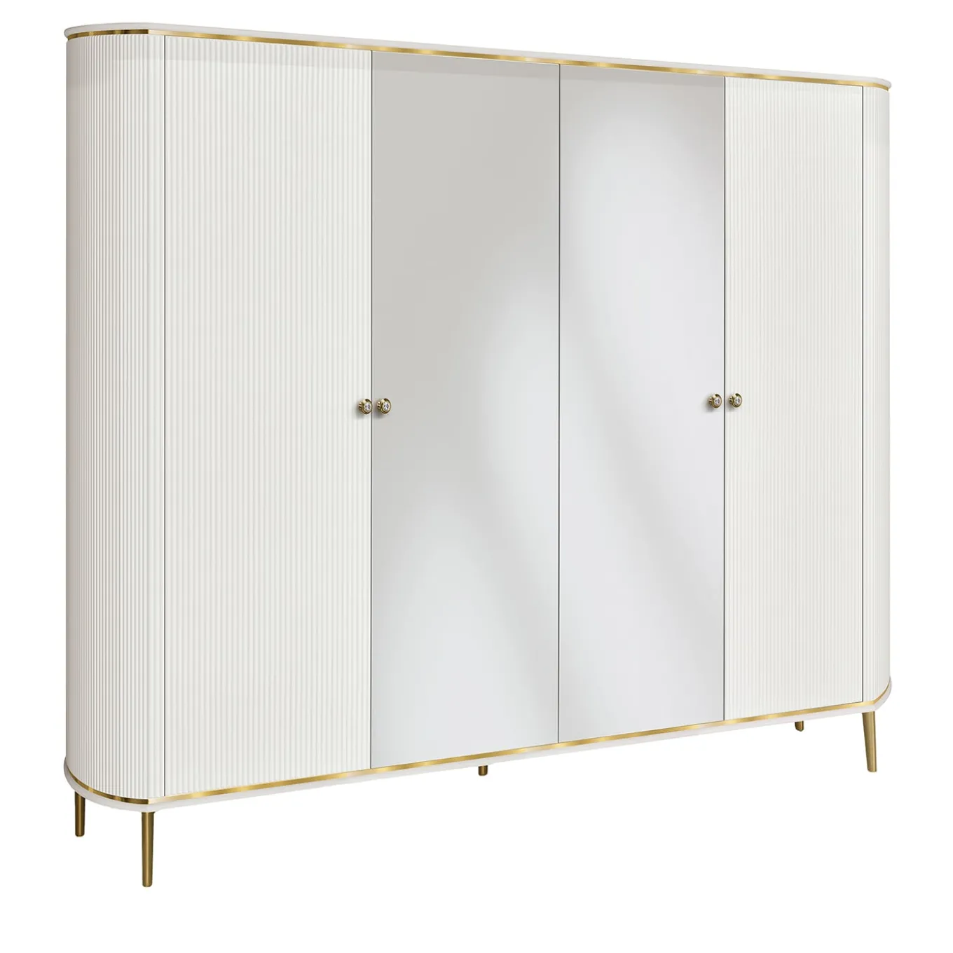 Armadio Bianco a 4 Ante con Specchio e Accenti in Metallo Oro