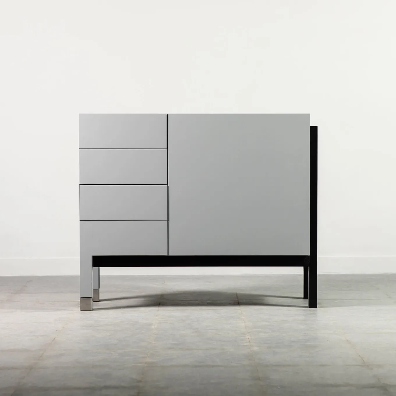 Il mobile in legno laccato opaco grigio e nero è caratterizzato da un design elegante e moderno con un sorprendente contrasto di toni grigi e neri. La finitura opaca liscia aggiunge un tocco sofisticato, mentre la struttura resistente garantisce una qualità duratura. La sua estetica raffinata e la sua versatilità lo rendono un’aggiunta funzionale ed elegante a qualsiasi spazio moderno.