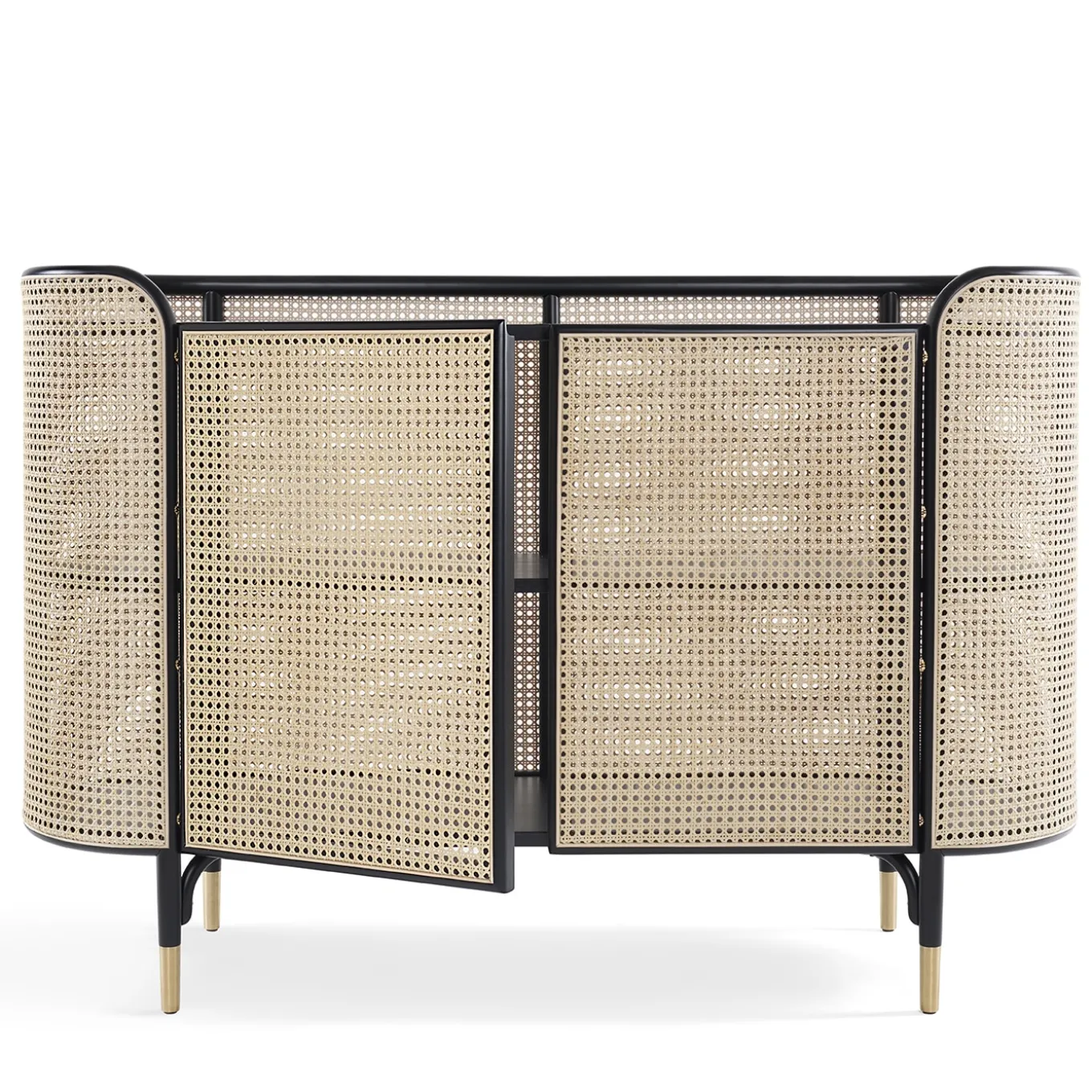 L’affascinante fascino naturale della paglia di Vienna è celebrato in questo iconico progetto del duo di architetti GamFratesi, un mobile raffinato e moderno che può essere abbinato alla consolle, al tavolino e alla libreria della stessa serie. Arioso ed elegante, è realizzato a mano in faggio curvato e laccato nero e paglia di Vienna. L’intero pezzo poggia su piedini in ottone. Disponibile in finitura naturale su richiesta al Concierge.