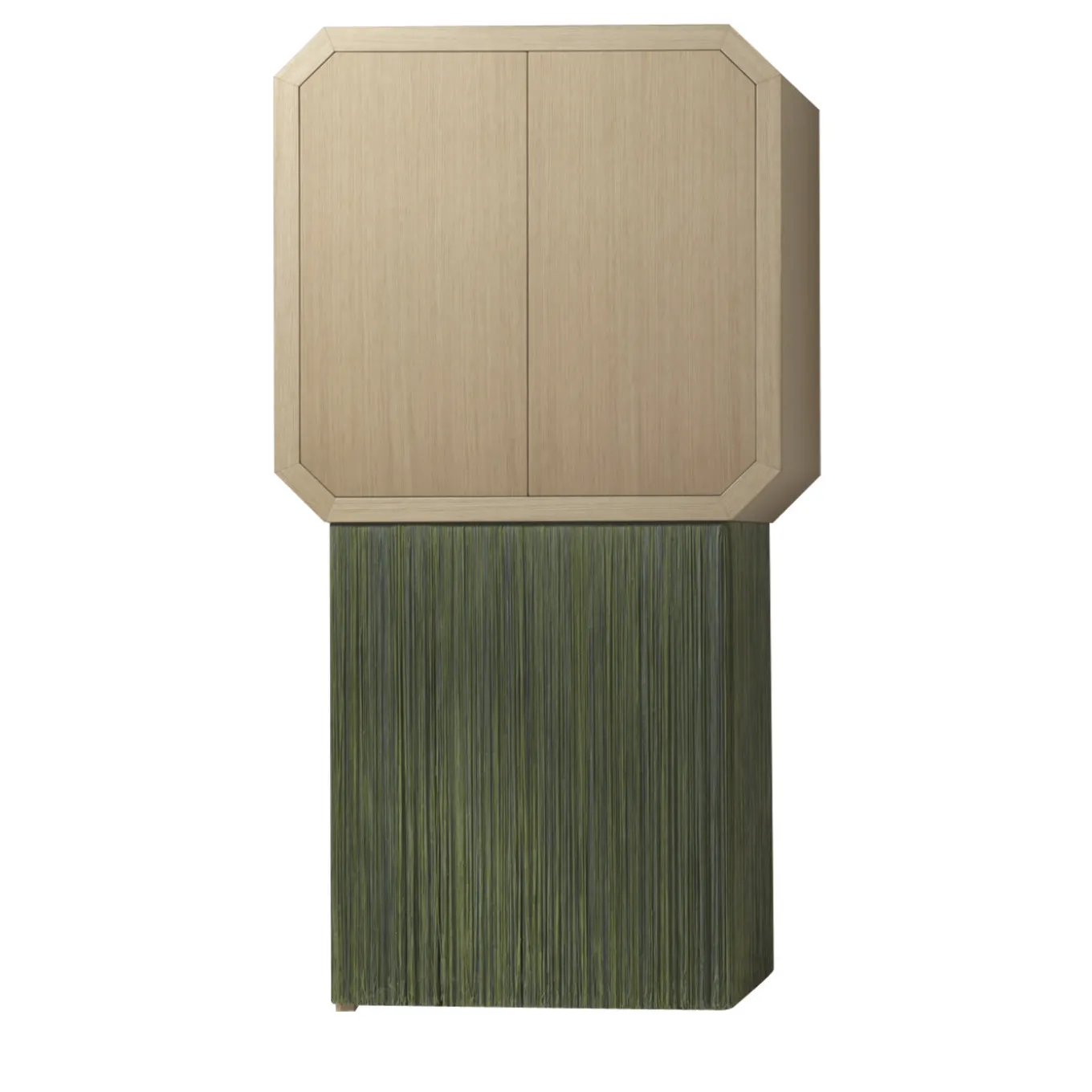 Ispirato all’atmosfera del teatro, questo mobile unico fa parte della serie Sipario. Il mobile superiore è disponibile in rovere o in noce canaletto con un ripiano interno in vetro. Lo spazio sottostante è coperto da due lunghe frange di passamaneria tradizionale italiana disponibile in diversi colori, realizzate con la tecnica del “Tripolino”, una passamaneria molto fitta ottenuta con un unico filo accuratamente lavorato all’uncinetto.