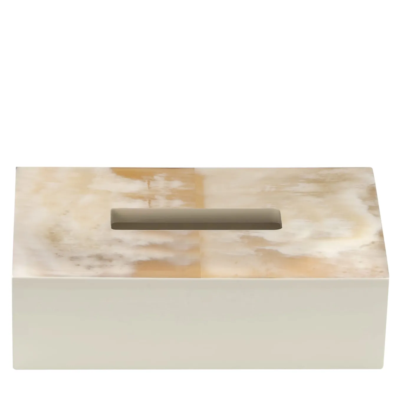 Tanto semplice quanto lussuosa, questa scatola per fazzoletti di carta in legno è un pezzo unico in grado di accentuare scrivanie o bagni con un’esclusività senza precedenti. Preziosi intarsi in corno decorano la parte superiore, controbilanciando la finitura monocromatica avorio lucido che caratterizza il resto della struttura. Il corno garantisce l’esclusività di ogni singolo pezzo.