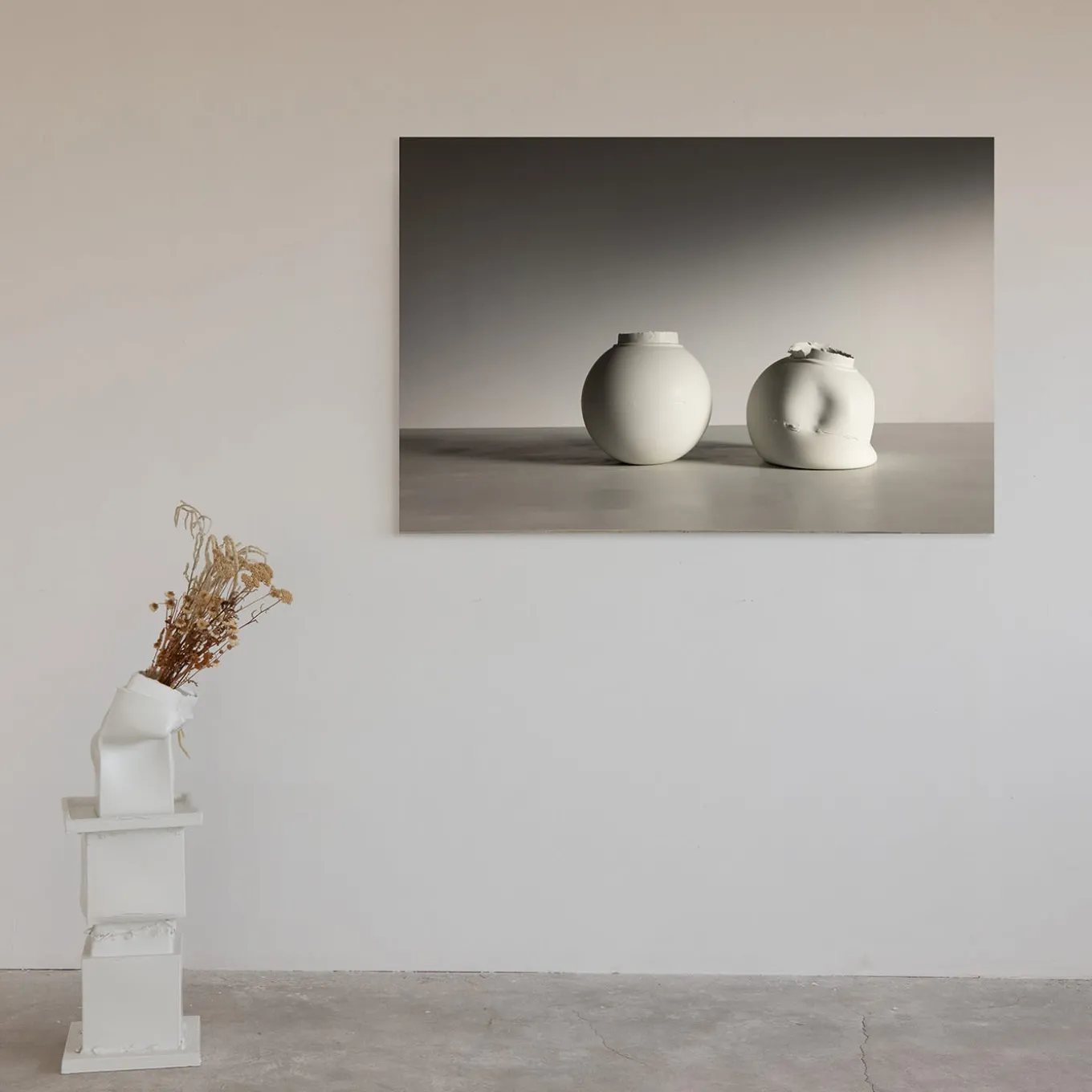 “Waiting in Cassola” è un’accattivante fotografia con stampa a pigmenti di vasi di ceramica bianca, stampata su carta Fine Art e montata su dibond. Venduta senza cornice, include un certificato di autenticità che ne garantisce la provenienza. Parte del progetto “Break the Mold”, questo pezzo critica la produzione di massa e rende omaggio a Nove di Bassano, Italia, città natale del nonno dell’artista. La stampa a grandezza quasi naturale crea l’illusione che i vasi emergano nello spazio fisico, rendendo tangibile un ricordo. I vasi vuoti e sbilenchi evocano le fabbriche di ceramica abbandonate della regione e riflettono lo stile ceramico unico dell’artista. La loro asimmetria e fragilità, che ricordano le opere di Giorgio Morandi, offrono un commento toccante sull’imperfezione, l’artigianato e l’impermanenza.