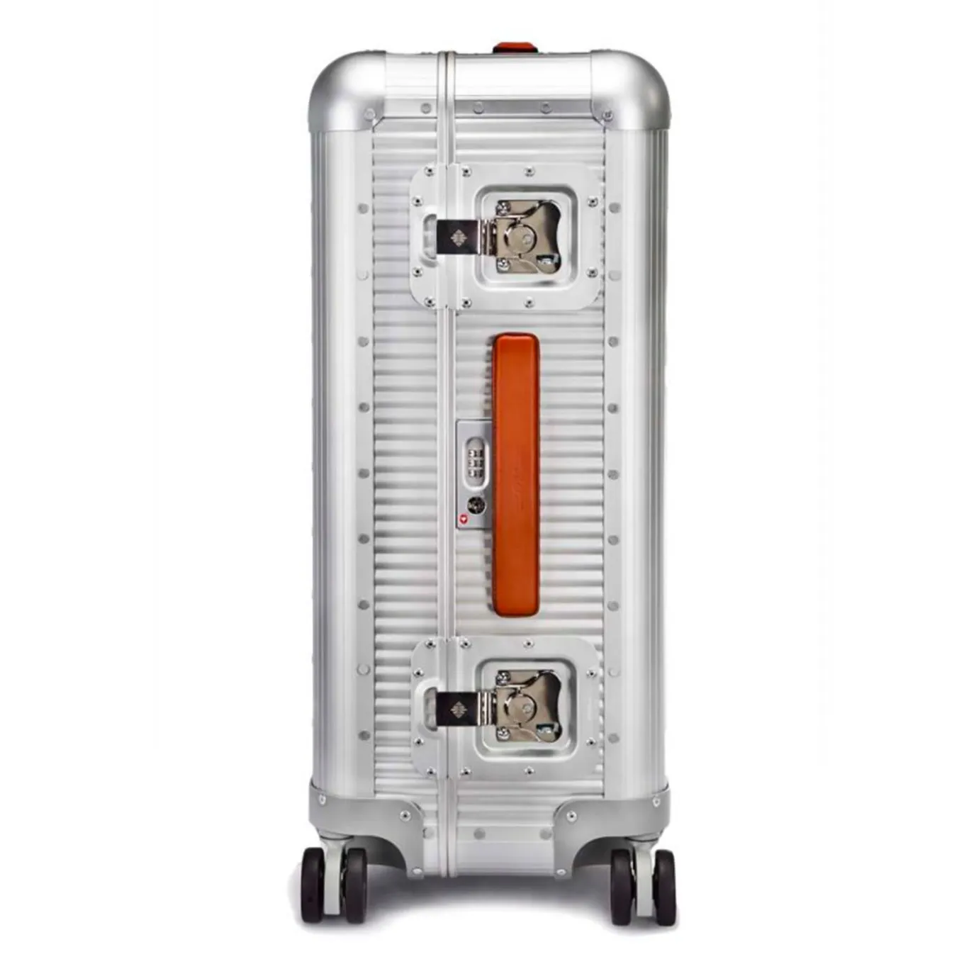 Esclusivamente Made in Italy, le valigie Bank si ispirano ai bauli di un tempo rivisitati in chiave moderna. I gusci in alluminio, spessi 10 micron (?), abbinati alle speciali chiusure Butterfly, garantiscono protezione e resistenza agli agenti atmosferici. Le doppie ruote assicurano facilità di trasporto e gli interni con divisori per gli scomparti e dettagli in pelle garantiscono una perfetta organizzazione del contenuto.