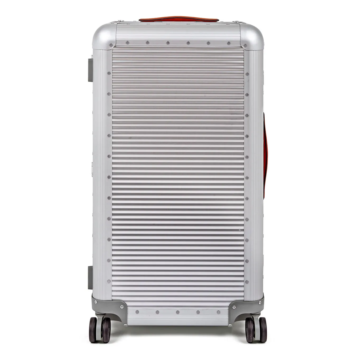 Esclusivamente Made in Italy, le valigie Bank si ispirano ai bauli di un tempo rivisitati in chiave moderna. I gusci in alluminio, spessi 10 micron (?), abbinati alle speciali chiusure Butterfly, garantiscono protezione e resistenza agli agenti atmosferici. Le doppie ruote assicurano facilità di trasporto e gli interni con divisori per gli scomparti e dettagli in pelle garantiscono una perfetta organizzazione del contenuto.