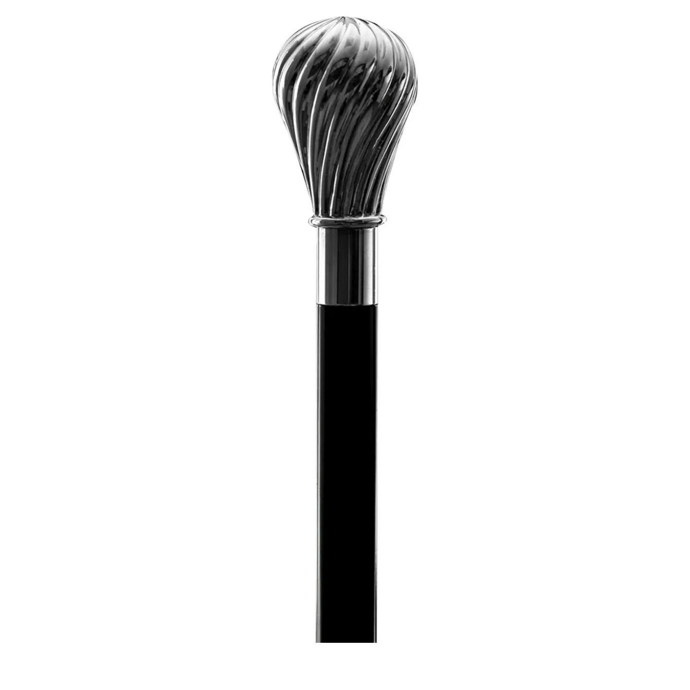 Caratterizzato da un design elegante e classico, questo bastone presenta un manico in metallo riccamente decorato con eleganti motivi in rilievo sulla superficie. L’asta conica di questo sofisticato accessorio è realizzata in legno di faggio nero lucido e presenta una punta in ottone argentato con estremità protettiva in gomma. Si tratta di un oggetto da collezione, da non utilizzare per camminare.