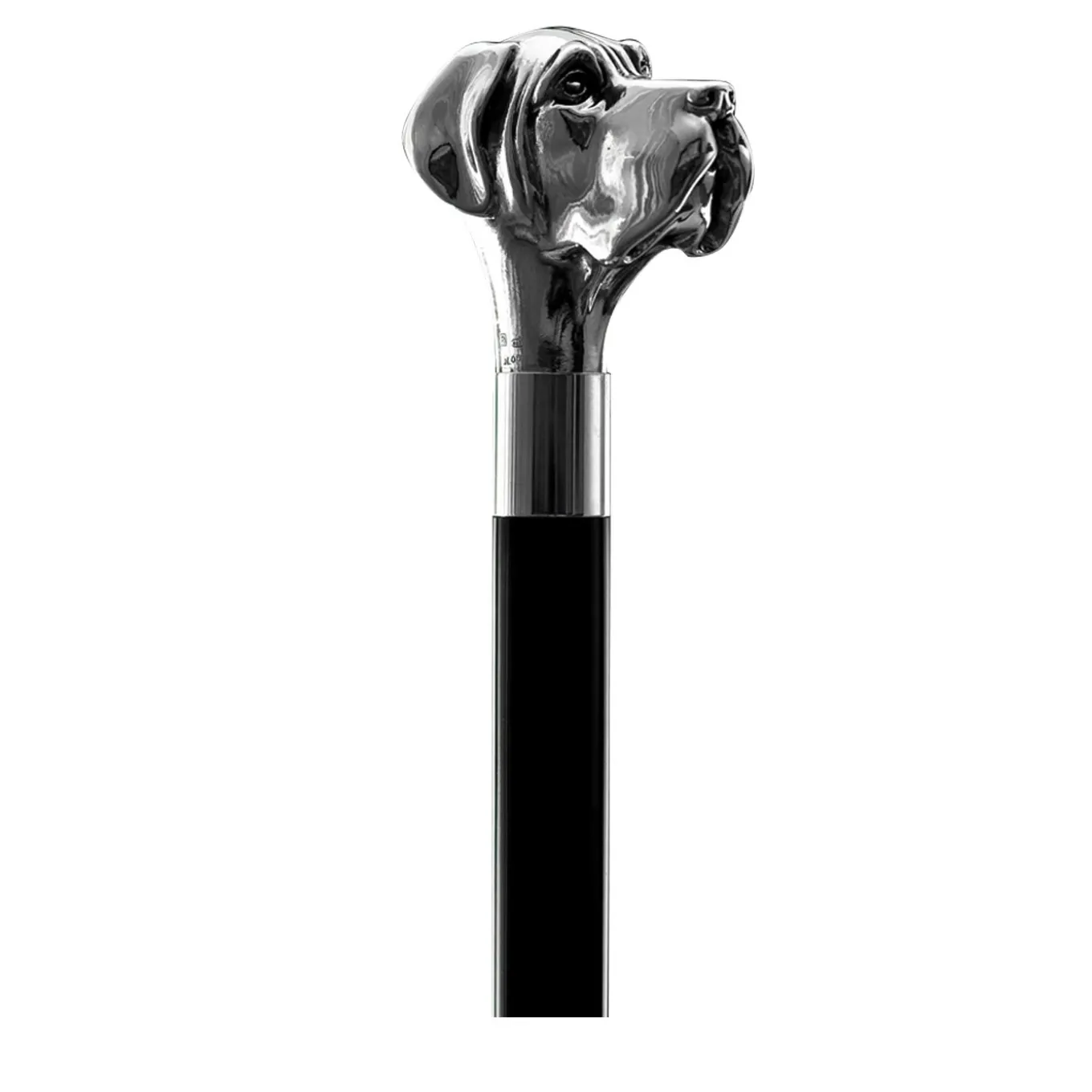 Caratterizzato da un design elegante e classico, questo bastone presenta un manico in metallo riccamente decorato con eleganti motivi in rilievo sulla superficie. L’asta conica di questo sofisticato accessorio è realizzata in legno di faggio nero lucido e presenta una punta in ottone argentato con estremità protettiva in gomma. Si tratta di un oggetto da collezione, da non utilizzare per camminare.