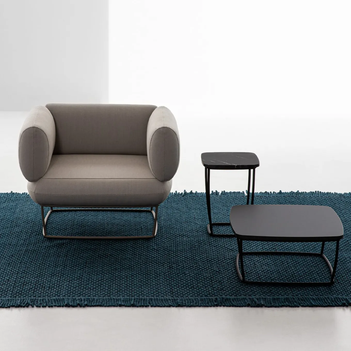 Bernard è una collezione completa e versatile, adatta sia al residenziale che al contract. Il nucleo originale è rappresentato da una sofisticata poltroncina, che si distingue per il doppio senso di seduta, ottenuto grazie al disegno di moduli identici per schienale e bracciolo, che possono variare liberamente la loro funzione. Il rivestimento in lana vergine pettinata grigio chiaro completa la base laccata fango. Sono disponibili altre finiture, per informazioni rivolgersi al Concierge.