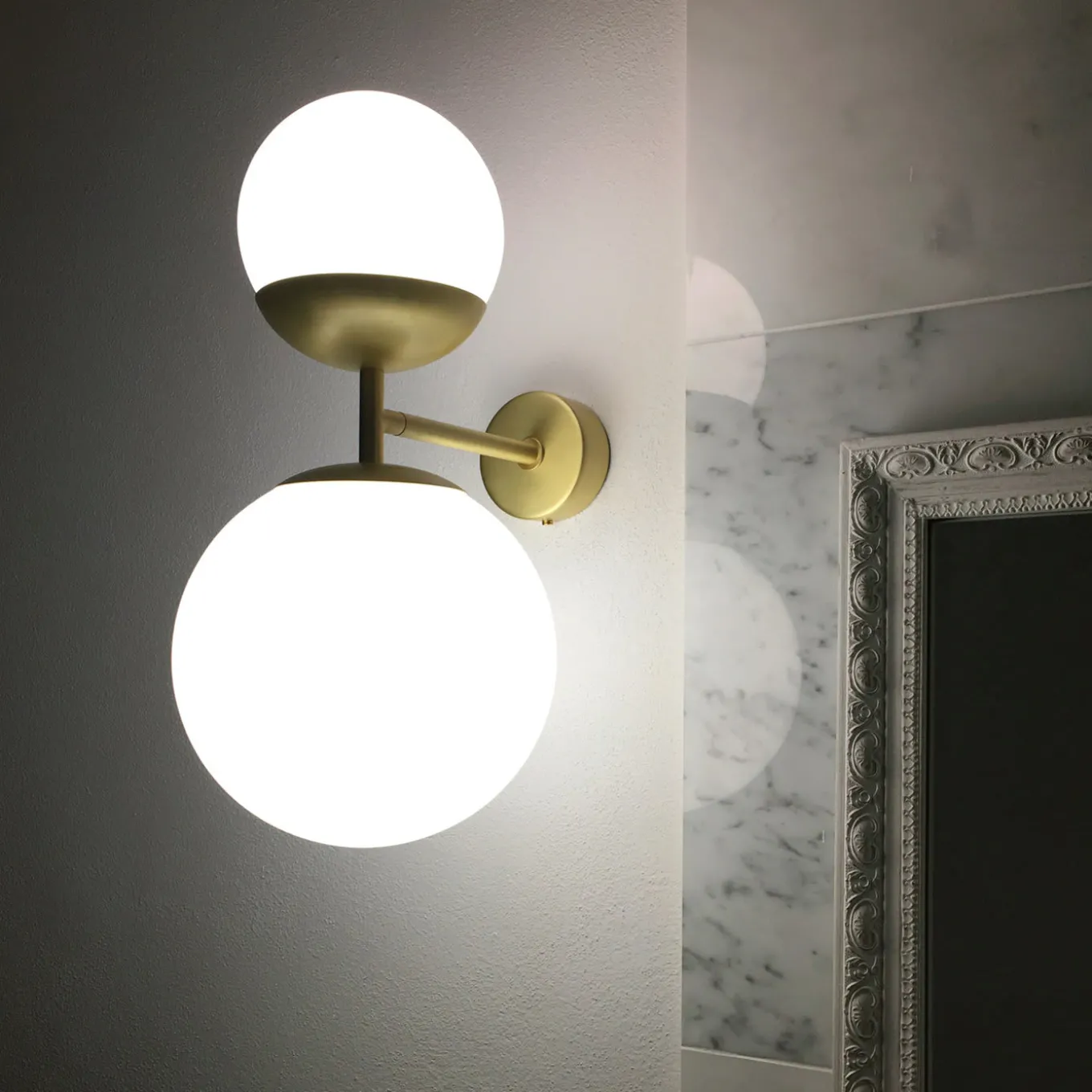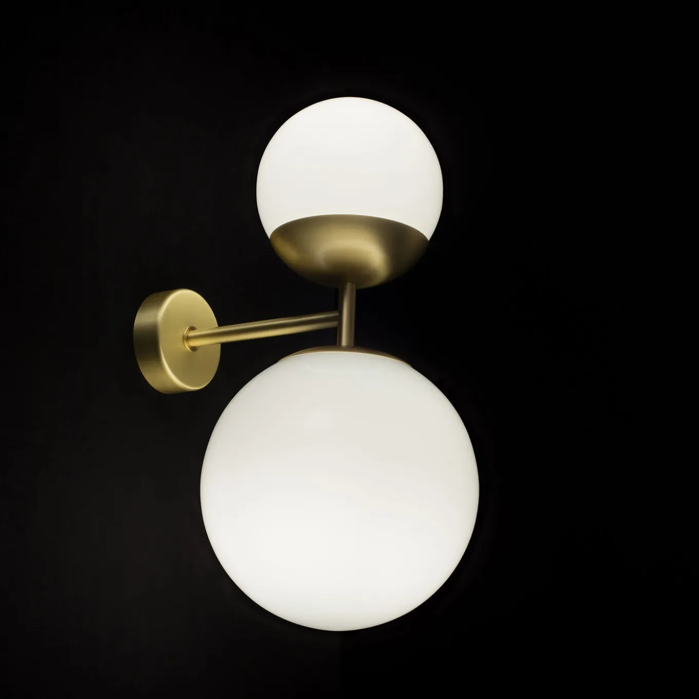 Parte della collezione Biba, disegnata da Lorenza Bozzoli e caratterizzata dalla combinazione di strutture dritte e paralumi sferici, questa applique ha il corpo in ottone satinato. L’armoniosa coesistenza di silhouette diverse è arricchita dall’eleganza asimmetrica dei due paralumi in vetro bianco lucido di dimensioni diverse. Un pezzo moderno e sofisticato che arricchirà una casa contemporanea, questo pezzo può essere esposto con altri della stessa serie. Su richiesta sono disponibili le certificazioni per il settore contract e commerciale.