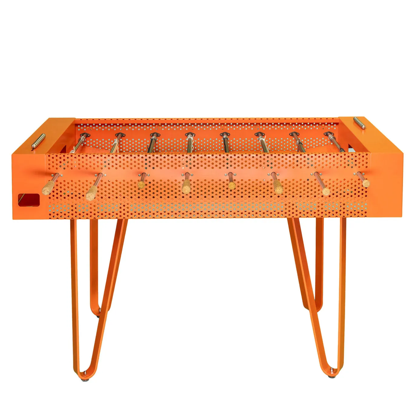 Il calciobalilla Joie in versione melone presenta un’elegante scocca in lamiera perforata abbinata a giocatori grigi e fucsia. Progettato con attenzione ai dettagli, include impugnature in sughero e una pallina in sughero per migliorare il comfort e la risposta tattile. Interamente realizzato in metallo con componenti in acciaio inox, poggia su gambe eleganti che garantiscono stabilità e un’estetica contemporanea. È disponibile anche una versione per esterni, che lo rende un’aggiunta raffinata agli spazi di gioco attenti al design. Altre opzioni di colore sono disponibili nel catalogo Artemest. Per maggiori dettagli, contattare il Concierge.
