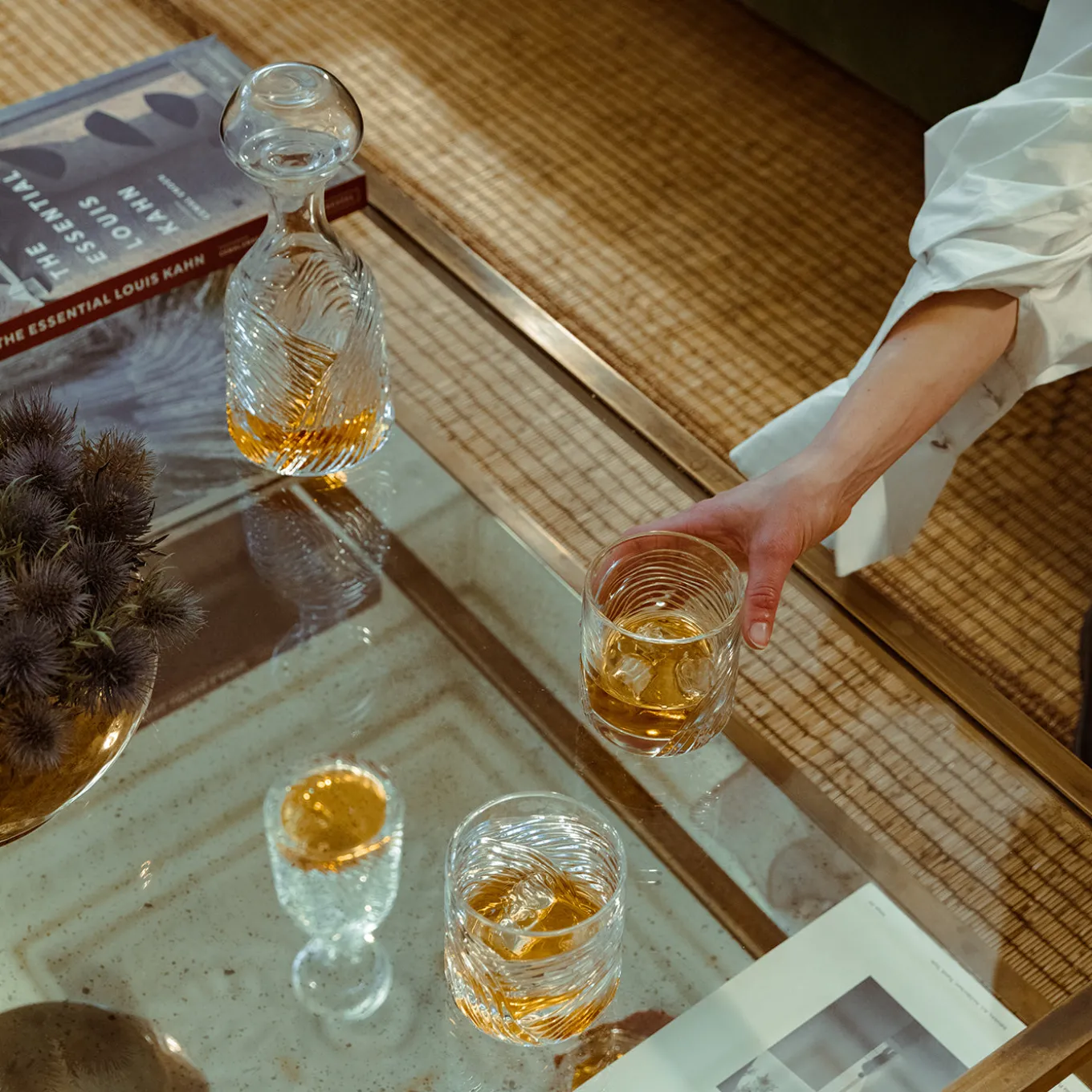 Elevate qualsiasi esperienza culinaria con la bottiglia decorativa Grecale. Questo capolavoro di medie dimensioni è realizzato in cristallo soffiato a mano e presenta intricate incisioni artigianali che conferiscono un carattere unico e sofisticato. Il suo design elegante non solo ha una funzione pratica, ma trasforma qualsiasi ambiente in un regno di raffinata bellezza. Grazie alla sua capacità di catturare e riflettere la luce in modo ipnotico, questa bottiglia decorativa diventa un accattivante punto focale. Ideale per aggiungere un tocco di eleganza senza tempo, è un accento perfetto sia per le occasioni formali che per gli incontri informali.