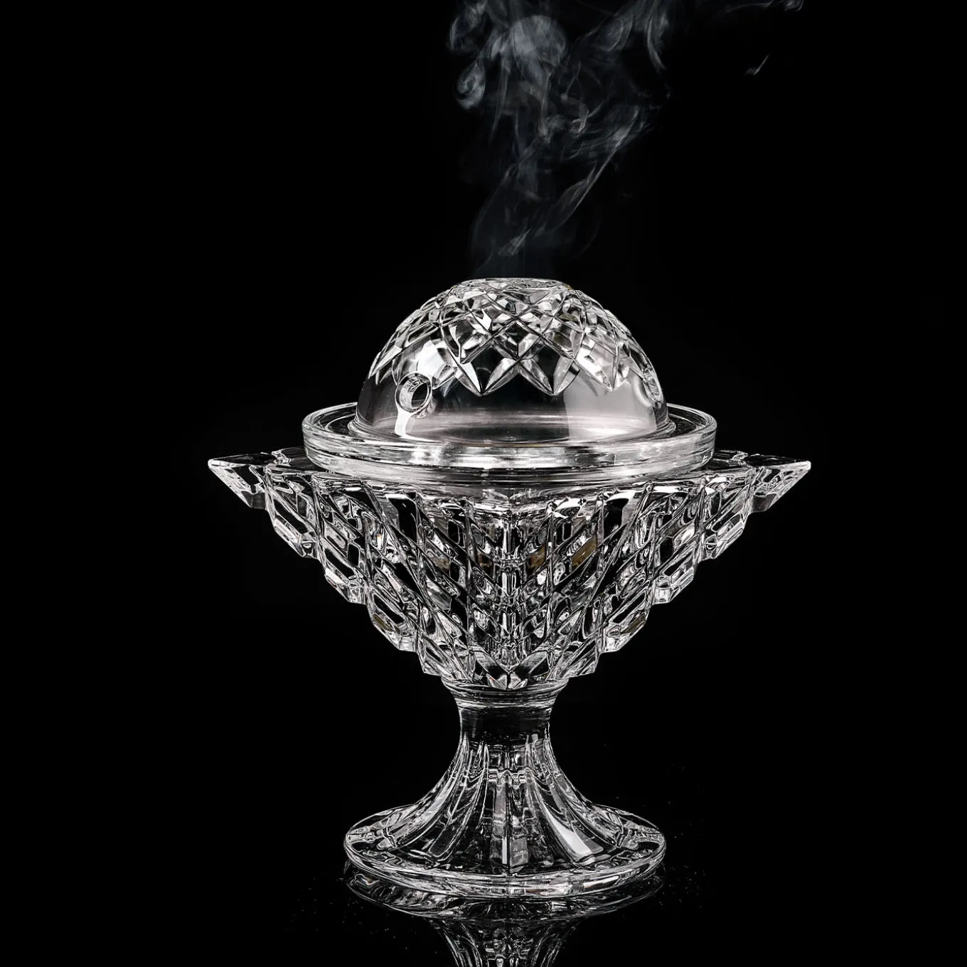 L’incenso è stato utilizzato nel mondo per meditare o per creare piacevoli atmosfere ambientali. L’idea di Mario Cioni è stata quella di portare questo momento in una forma più estetica e celebrativa. Questo incensiere in cristallo è completamente soffiato a bocca e tagliato a mano.