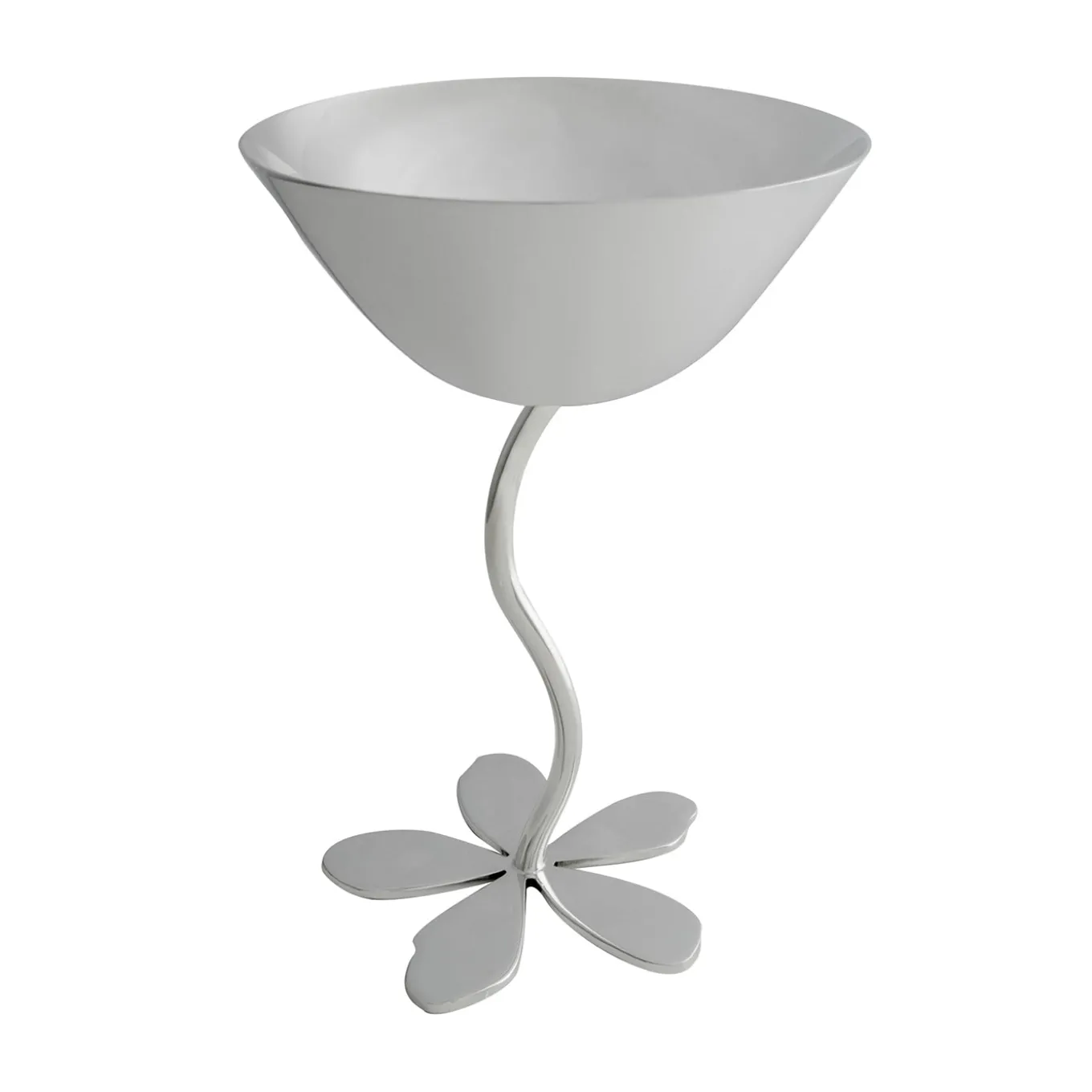 Il calice da vino Flor si distingue per lo stelo delicatamente curvato che sboccia in una base a forma di fiore, sorreggendo una coppa ampia e armoniosa, ideale per servire bevande raffinate. Rifinito con cura in argento lucido, unisce un design artistico a una sofisticata funzionalità, rendendolo perfetto anche per la presentazione di dessert. Ogni pezzo è completato dalla sottile firma del designer.