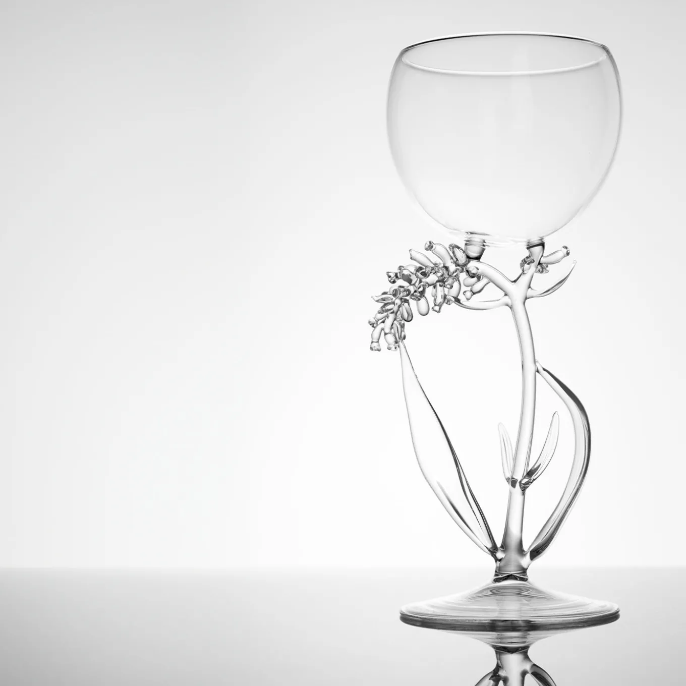 Questo bicchiere fa parte di una collezione di 21 pezzi unici, ciascuno ispirato a una diversa specie botanica e reinterpretato da Simone Crestani a partire dai disegni d’archivio dei Fratelli Toso. Lavorato a lume in vetro trasparente, evoca un giardino segreto in cui petali, steli e foglie sembrano prendere vita. Ogni bicchiere è irripetibile — un oggetto al tempo stesso funzionale e artistico, solido e fragile, intimo e universale. Come un fiore in piena fioritura, invita a contemplarne la bellezza o ad alzare un brindisi al giardino interiore che ciascuno custodisce in sé.