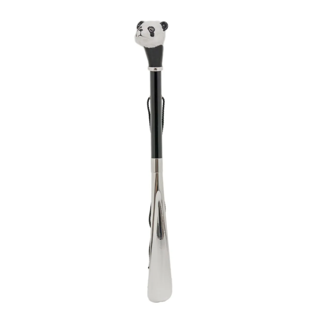 Caratterizzato da una testa di panda in ottone smaltato come manico, il calzascarpe Panda è un accessorio unico ed elegante che è un piacere usare. Realizzato a mano in Italia, ha un fusto in legno, un’estremità in ABS e una lunghezza di 50 cm.