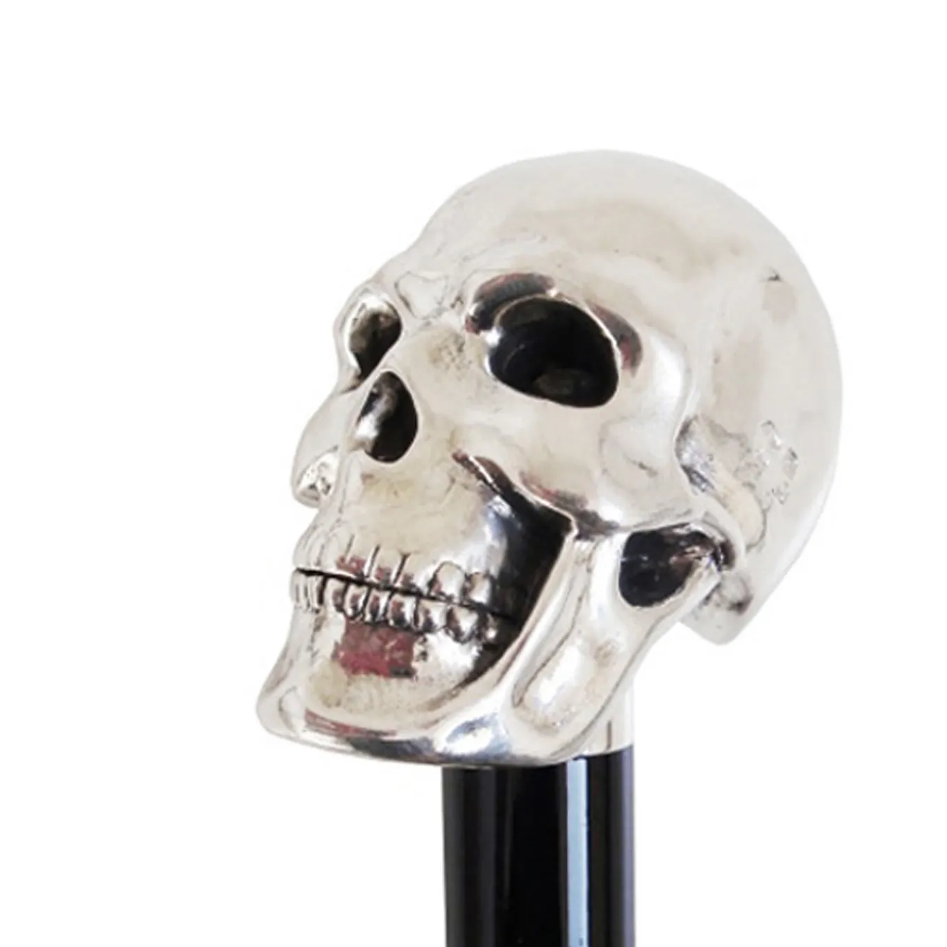 Questo calzascarpe di grande effetto presenta un fusto in legno di faggio e una paletta in plastica ABS leggera color argento. L’elegante manico in resina argentata ha la forma di un teschio.