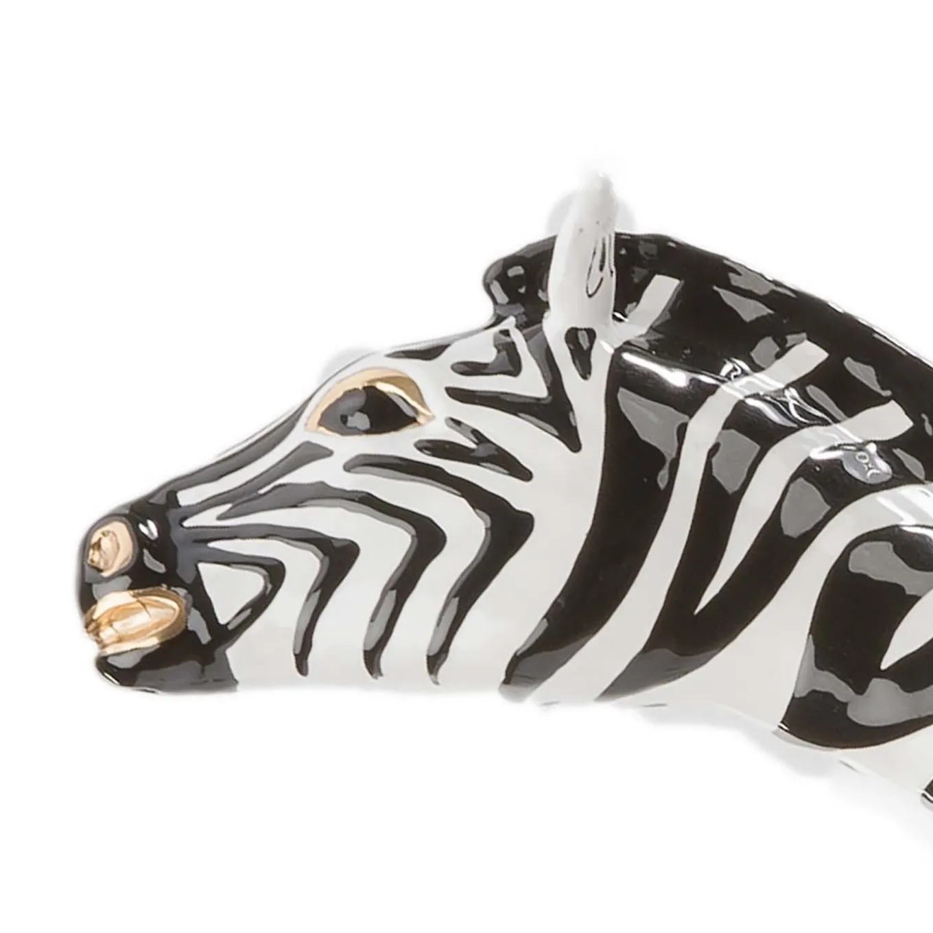 Il calzascarpe Zebra è un accessorio di grande effetto, con manico in ottone smaltato a forma di testa di zebra, fusto in legno e terminale in ABS. Di colore bianco e nero con finiture in ottone, il calzascarpe è lungo 50 cm ed è realizzato a mano in Italia.