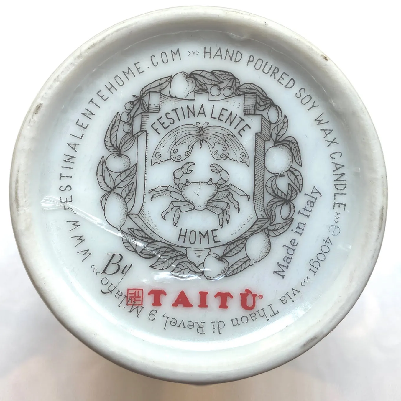 Note di erbe aromatiche e agrumi si fondono per creare il caratteristico aroma di questa candela profumata in pura cera di soia, che brucia attraverso un sottile stoppino in cotone e carta. Versata a mano in un contenitore di porcellana con coperchio sviluppato da Taitù Milano che celebra il logo di Festina Lente Home, la candela si ispira ai ricordi d’infanzia della proprietaria del marchio, quando trascorreva le vacanze estive nella soleggiata Costiera Amalfitana tra pinete e arance rosse. Una scatola di lusso completa il design di questa candela (400 gr) che ha un’autonomia di circa 90 ore.