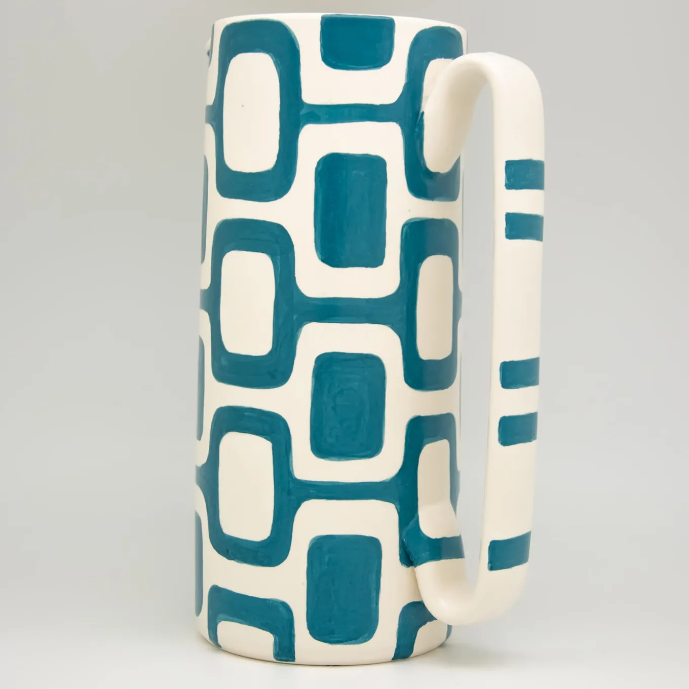 Ispirata ai marciapiedi delle spiagge di Rio de Janeiro, la collezione Serlio “pattern” evoca il legame emotivo dell’artista con il Brasile. Una caraffa in ceramica unica, interamente dipinta a mano, dove il motivo avvolge l’intero vaso, rifinito con uno smalto opaco che mette in risalto i dettagli artigianali. Portate un po’ di gioia tropicale su ogni tavola.