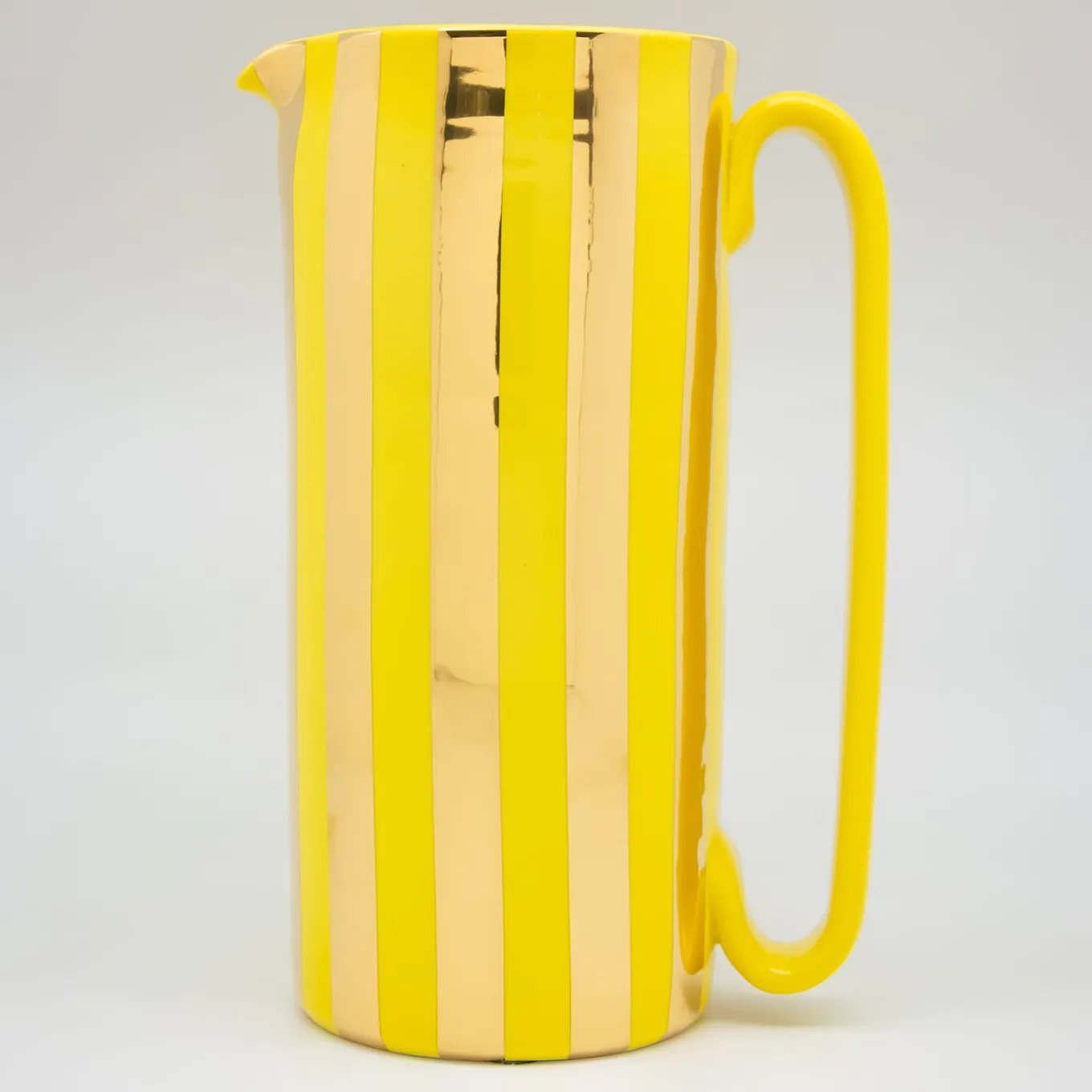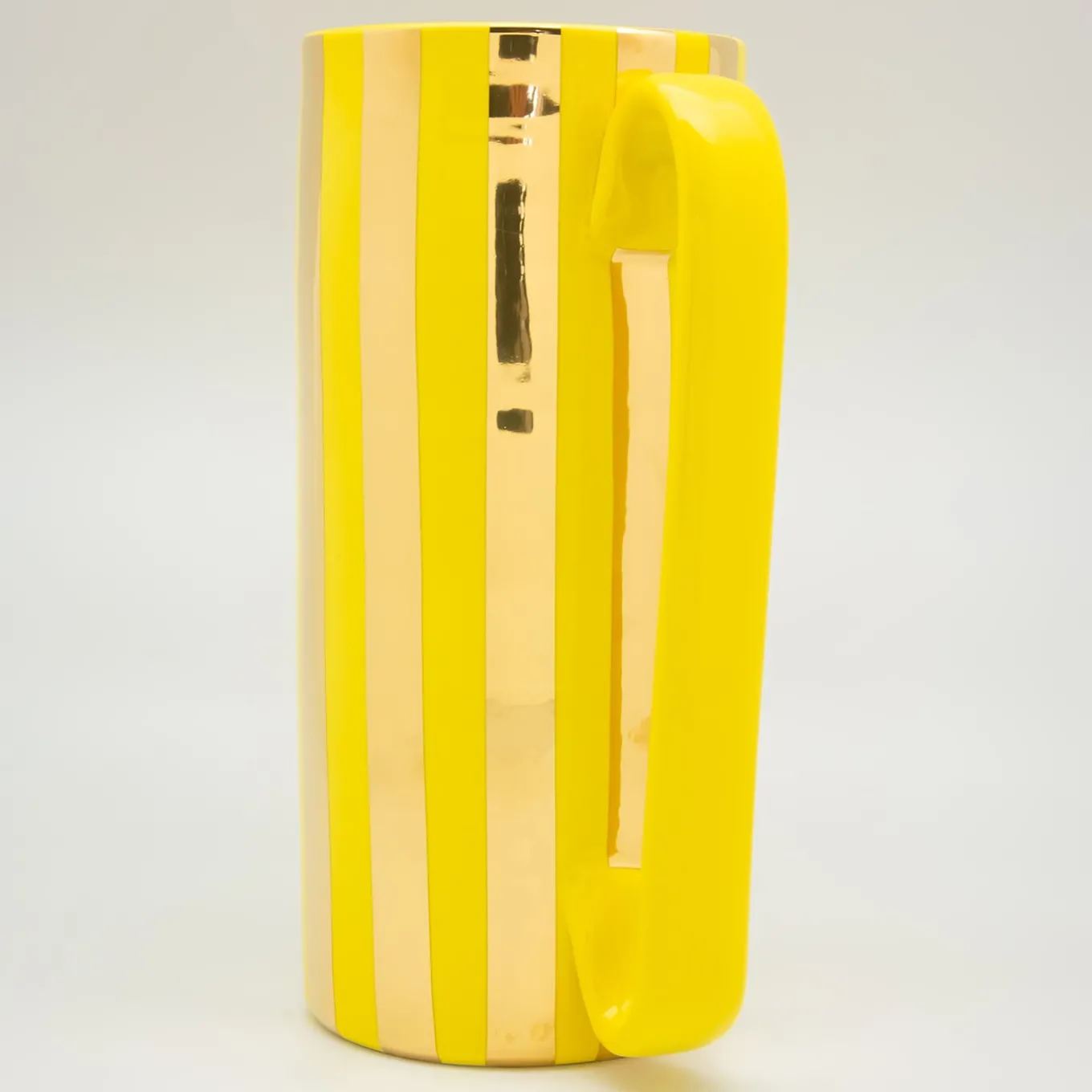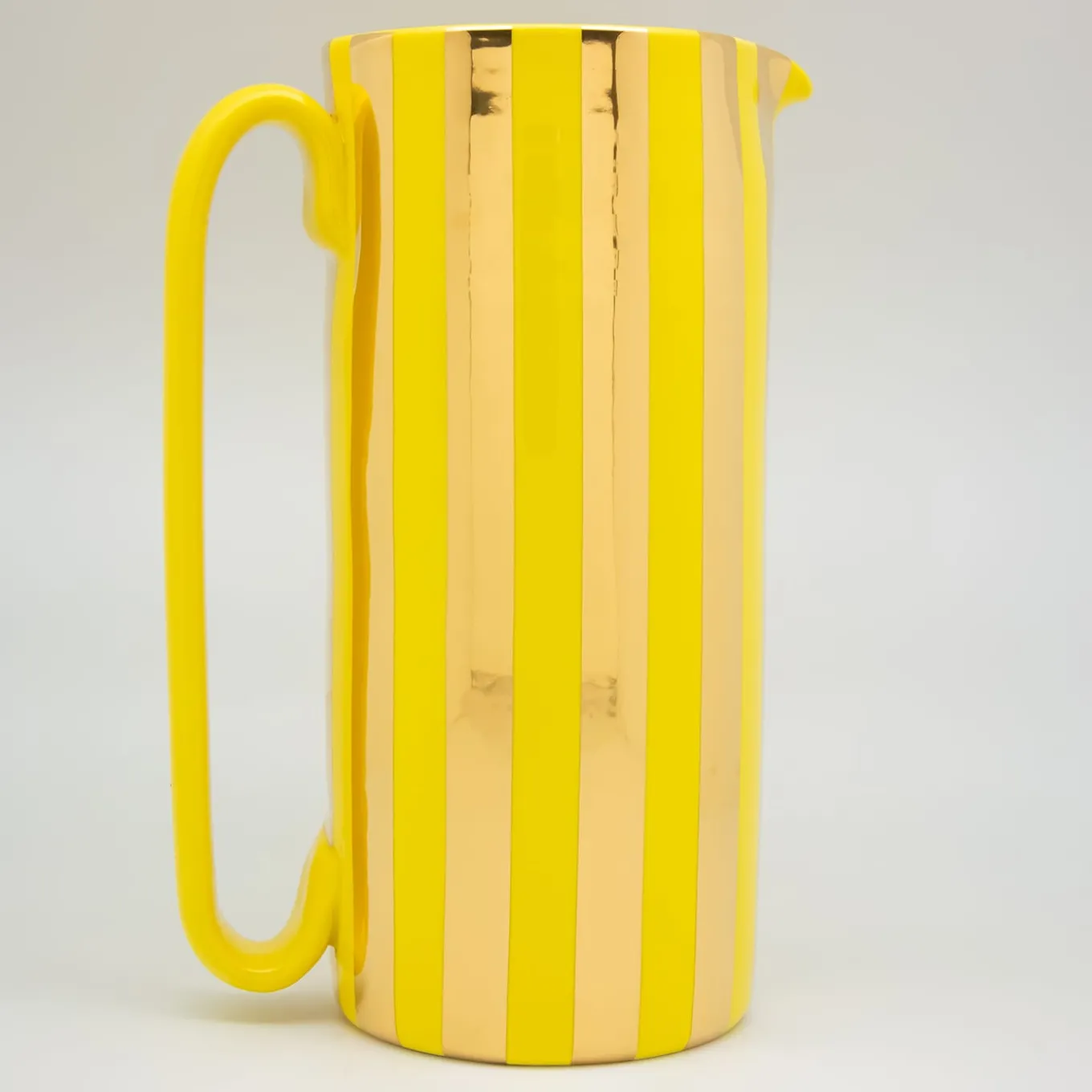 L’autentica caraffa “Mercante” in oro 24 K è l’unica e sola caraffa in ceramica con manico lineare. Realizzata a mano in terracotta bianca, la splendida caraffa Serlio è un bellissimo esempio di artigianato italiano. Valorizza qualsiasi tavola con il design minimalista di Tuttoattacato, che mette in risalto qualsiasi servizio da tavola classico o contemporaneo con il suo design elegante e la sua qualità. Cotte più volte, le strisce in oro 24 K sono il risultato della tradizionale tecnica del “Terzo Fuoco”.