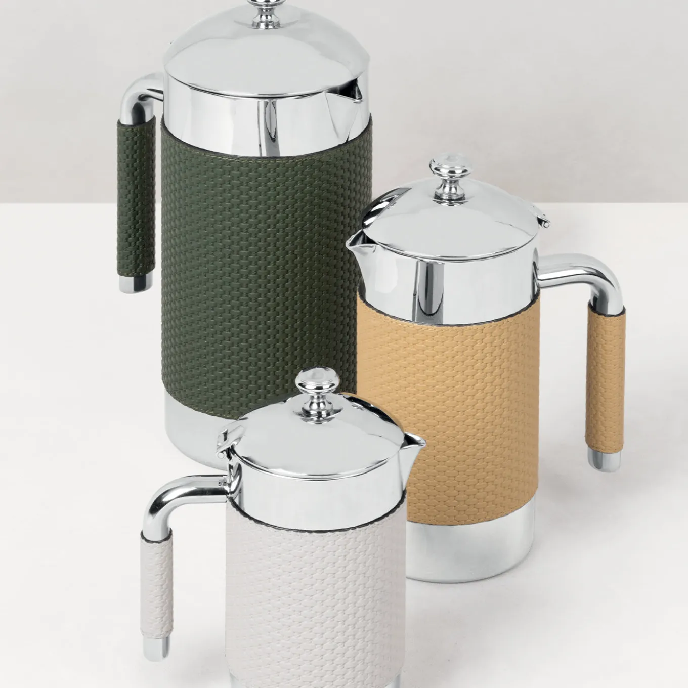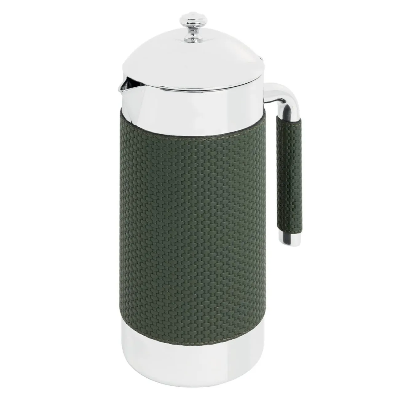 Questa raffinata caraffa isolata in acciaio inossidabile è adatta per bevande sia calde che fredde, grazie a un rivestimento in vetro a doppia parete e sigillato sottovuoto che mantiene la temperatura di servizio perfetta. Parzialmente rivestita in pelle di vitello grigia con stampa a nido d’ape intorno al corpo e al manico, questa caraffa ha una capacità di 1,2 litri e un sistema di chiusura a cerniera che può essere facilmente aperto con una sola mano.