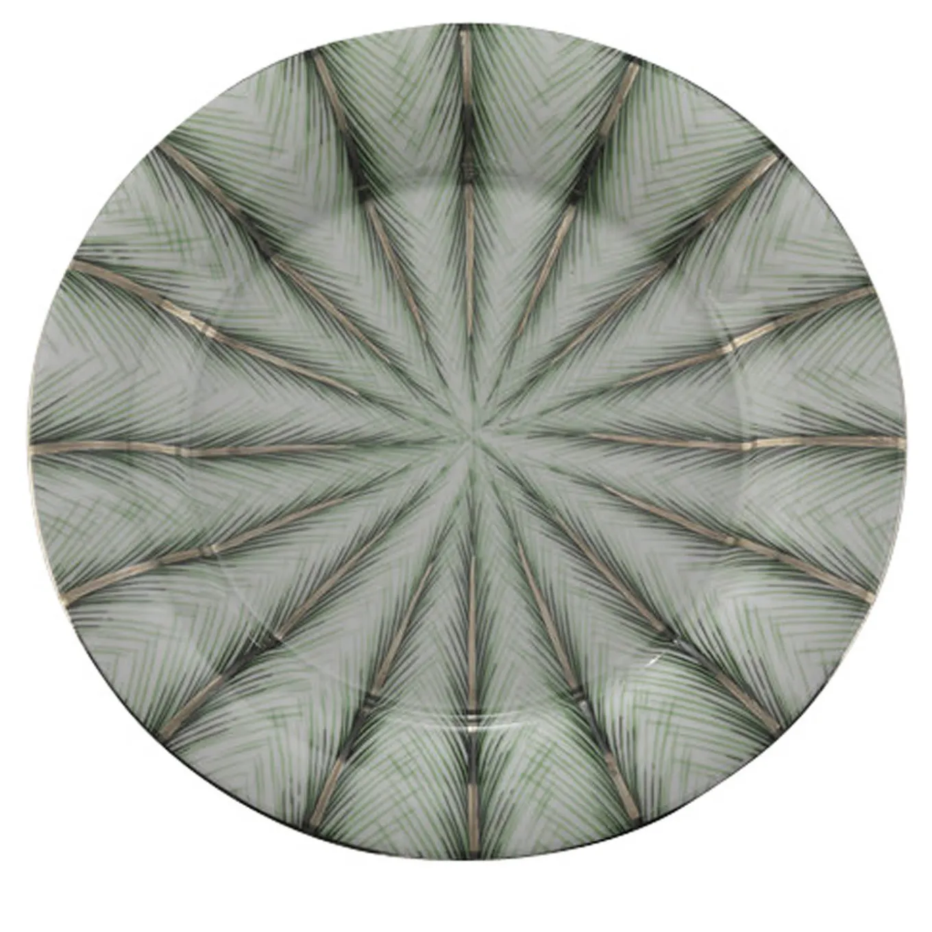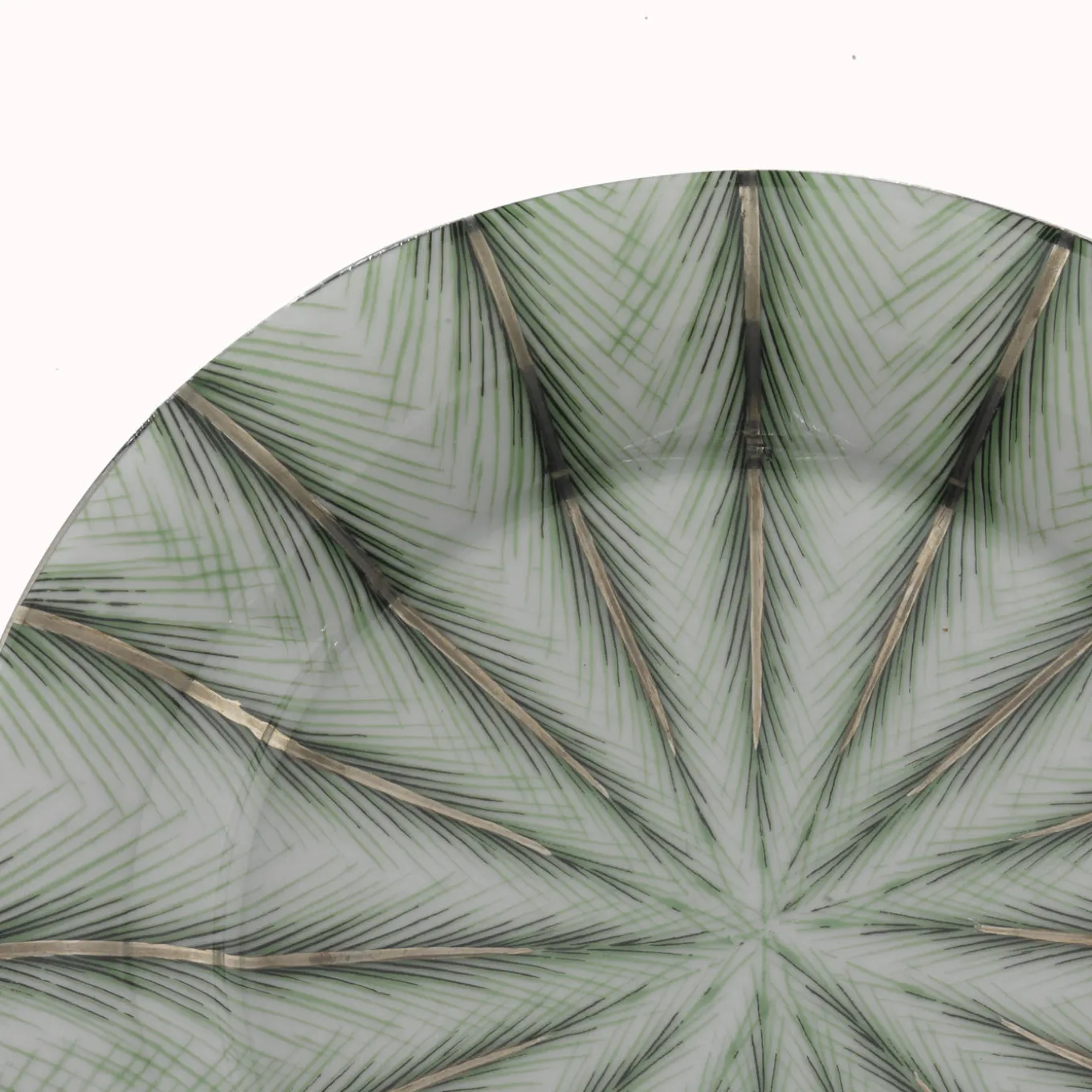 Questo elegante caricatore in fine porcellana presenta una suggestiva decorazione in verde e platino puro al 98% che include elementi naturali e geometrici.