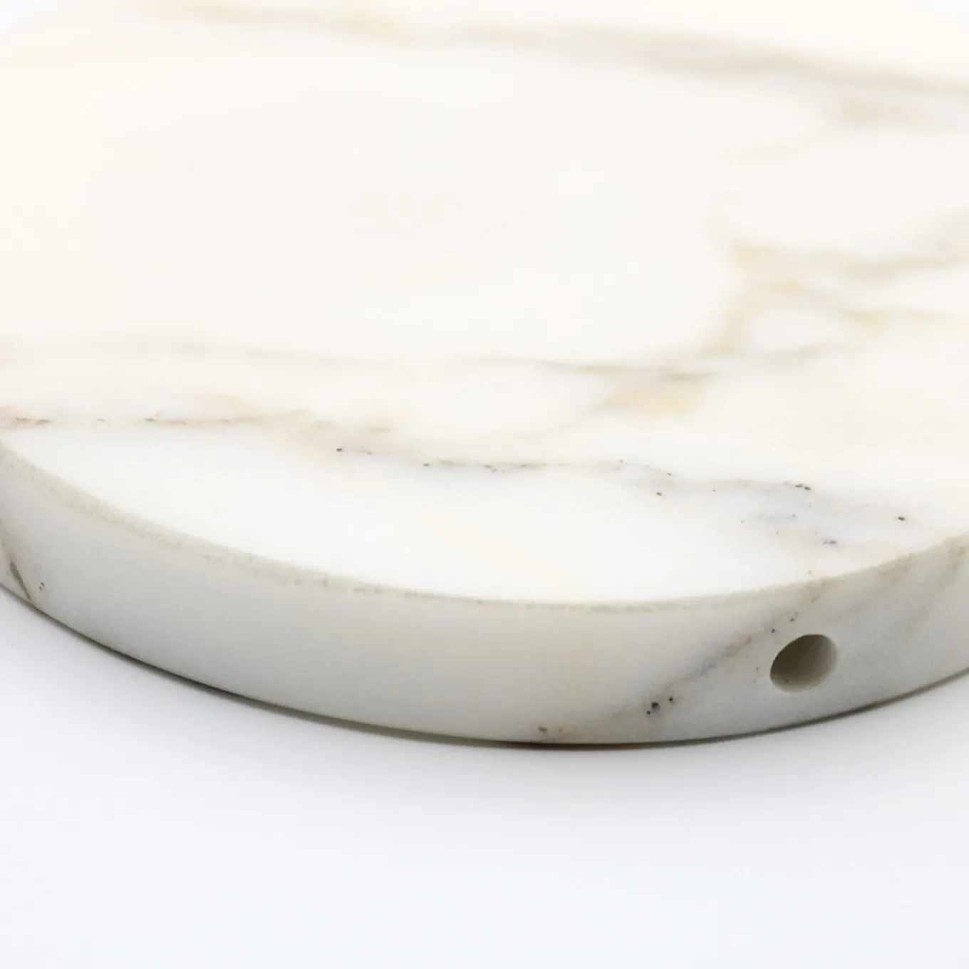 Questo caricabatterie wireless in marmo Calacatta è una squisita miscela di funzionalità e arte. Progettato per completare qualsiasi ambiente, questo pezzo presenta una splendida base in marmo proveniente dalle prestigiose Alpi Apuane, ornata da distintive venature grigio-oro che ricordano il classico marmo di Carrara. Questo design sofisticato non solo serve allo scopo, ma aggiunge anche un tocco di eleganza a spazi come il piano del tavolo o la zona notte. Grazie all’impegno per la qualità, questo prodotto incarna un’etica di zero plastica, che lo rende una scelta sostenibile per i consumatori attenti all’ambiente.