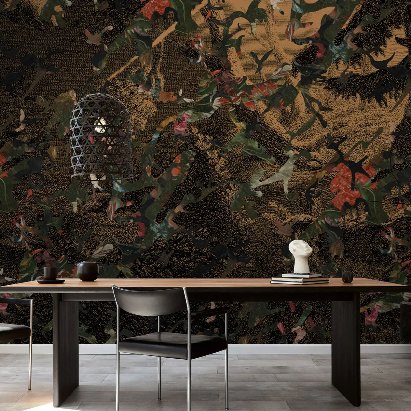 Ispirata a una traduzione francese del Paradiso perduto pubblicata nel 1863; un libro di 12 capitoli con 21 incisioni acquistato all’asta da Magnus Gjoen, questa opera d’arte utilizza una di queste incisioni contrastata da un camuffamento floreale.