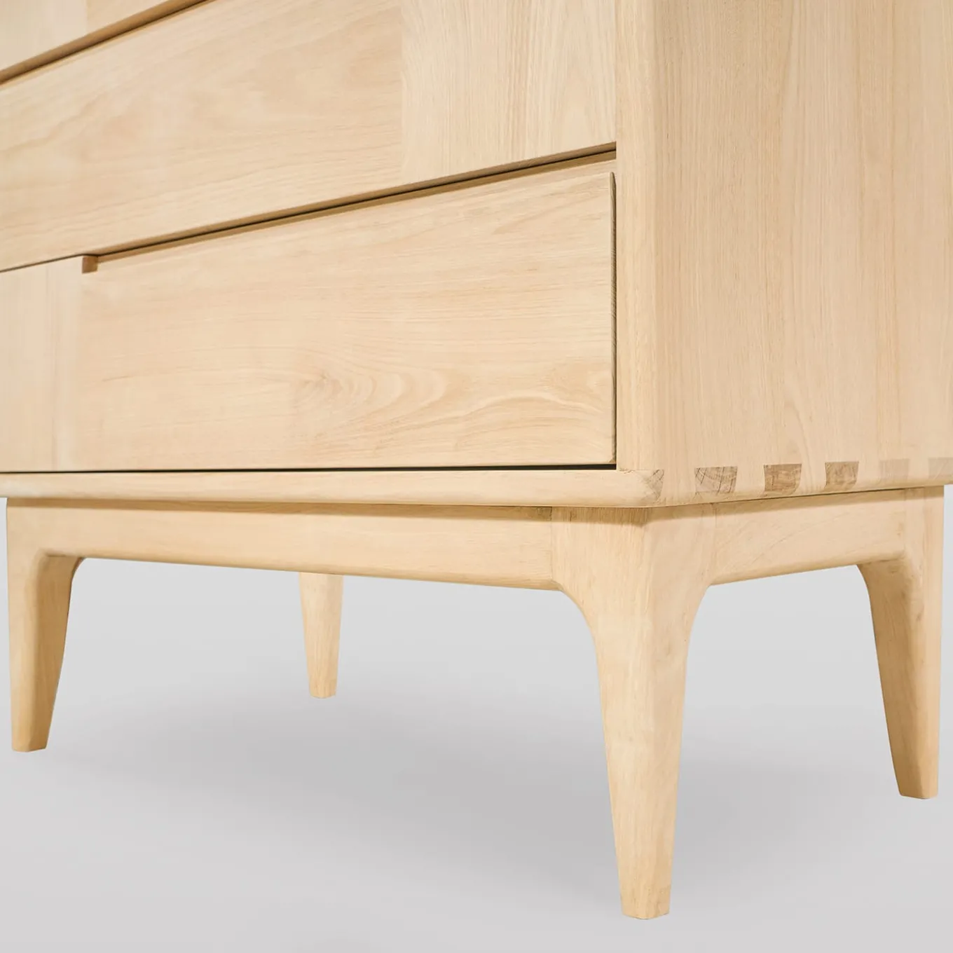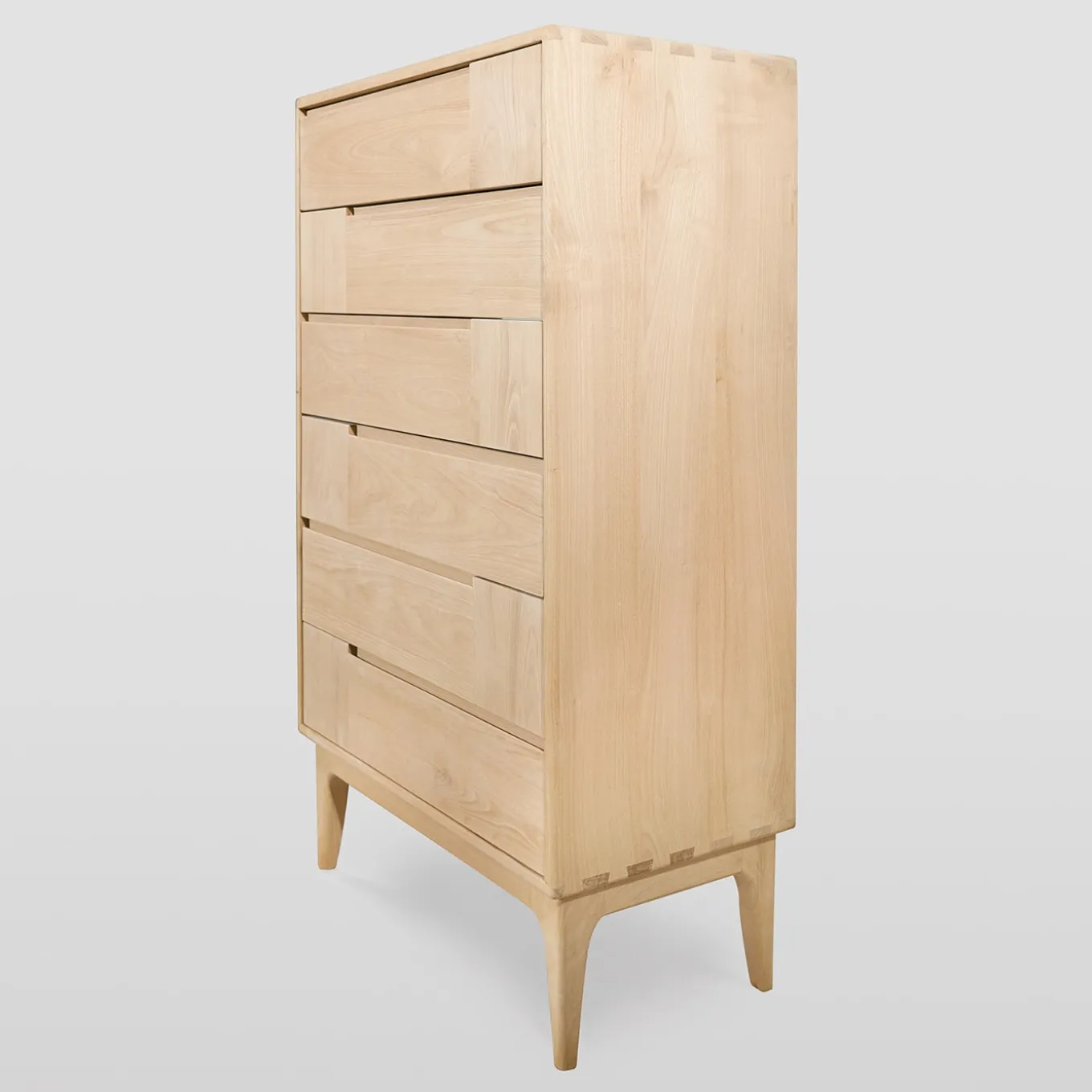 Dal design pulito e sofisticato, questo comò in stile scandinavo sarà un elegante pezzo d’accento per uno spazio interno contemporaneo. Realizzato a mano in castagno massiccio, presenta sei cassetti dalle linee orizzontali e verticali che creano una pratica scanalatura che funge da maniglia. Internamente è realizzato in faggio massiccio e poggia su piedi corti e sottili. Lucidato con lacche all’acqua e cera d’api, è personalizzabile su richiesta al Concierge.