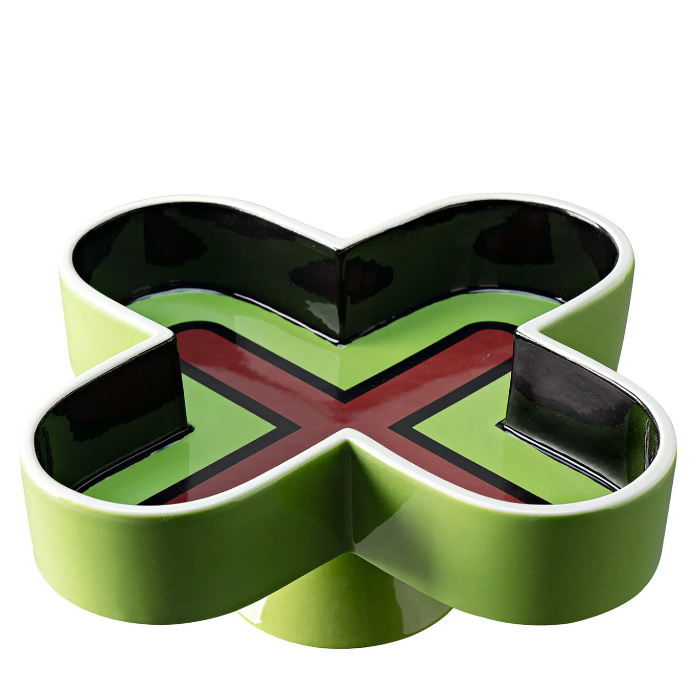 Il centrotavola Bolo Green di Karim Rashid presenta una forma scultorea audace con una brillante finitura verde lucida e un caratteristico motivo centrale a croce in rosso intenso, profilato in nero. Realizzato con una raffinata tecnica di colaggio in argilla bianca, questo pezzo di medie dimensioni in edizione limitata (349 esemplari) unisce espressione artistica ed eleganza funzionale, pensato per catturare l’attenzione negli interni contemporanei grazie al suo colore vibrante e al design moderno e simbolico.