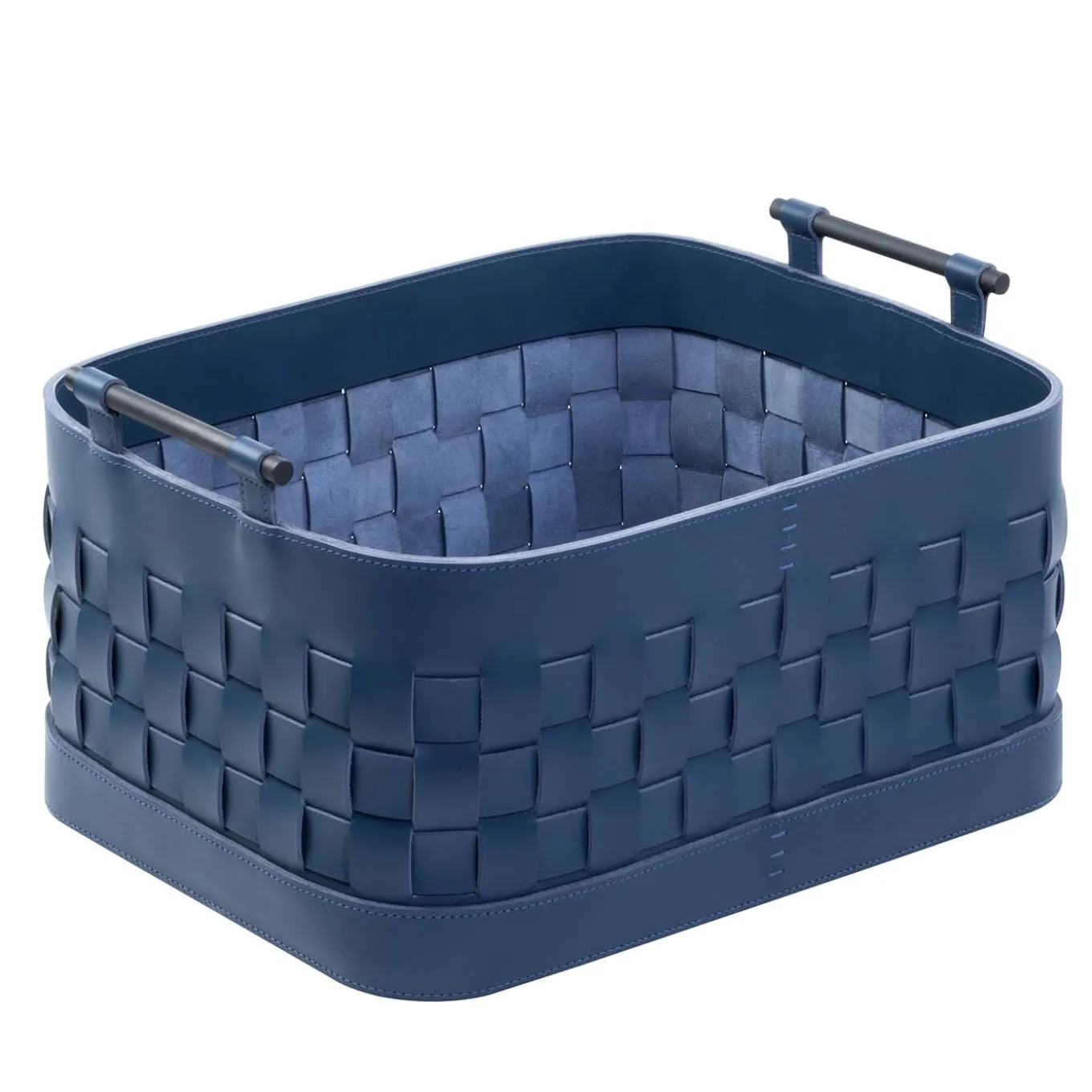 Oggetto d’arredo funzionale, versatile ed elegante, questo piccolo cestino rettangolare fa parte della collezione Ravenna, in cui strisce intrecciate di pelle di sella tinta al vegetale creano texture di grande effetto e una silhouette minimalista. I lati corti di questo pezzo sostengono due maniglie cilindriche in bronzo spazzolato. Adatto a una vasta gamma di piccoli oggetti, questo cestino sarà un complemento elegante per qualsiasi ambiente moderno. Resistente all’acqua, questo cestino si presenta in modo dinamico se abbinato agli altri pezzi della stessa collezione.