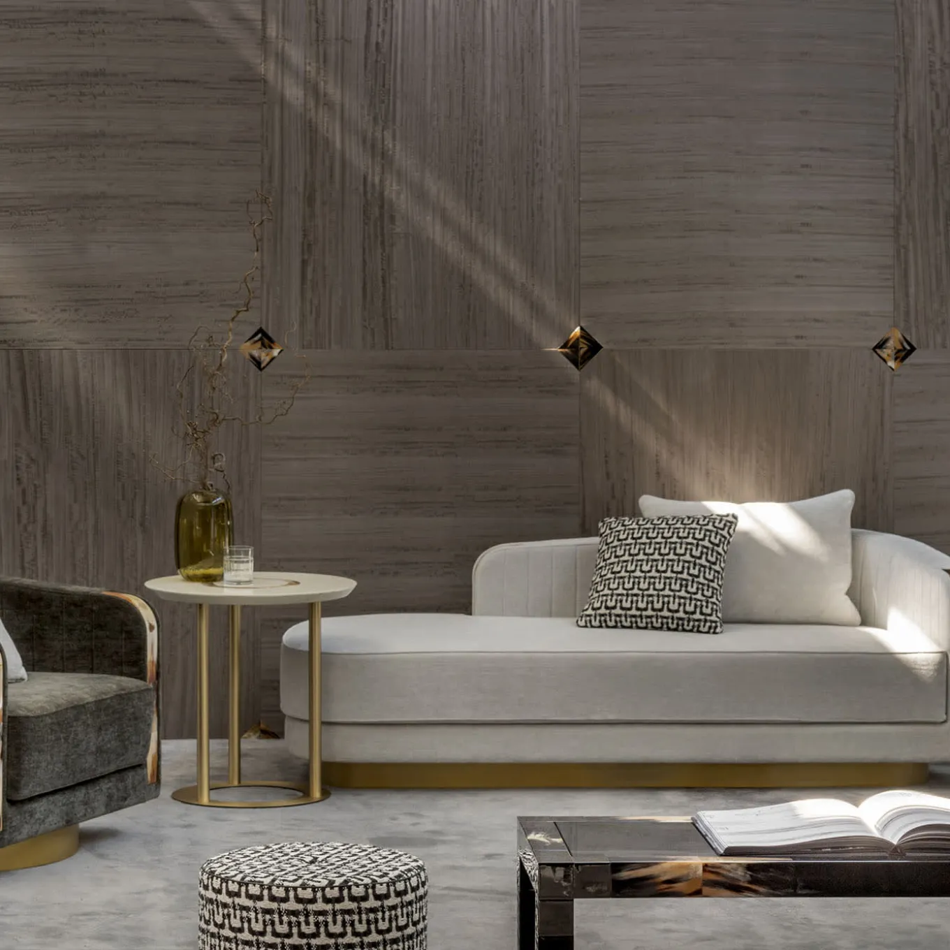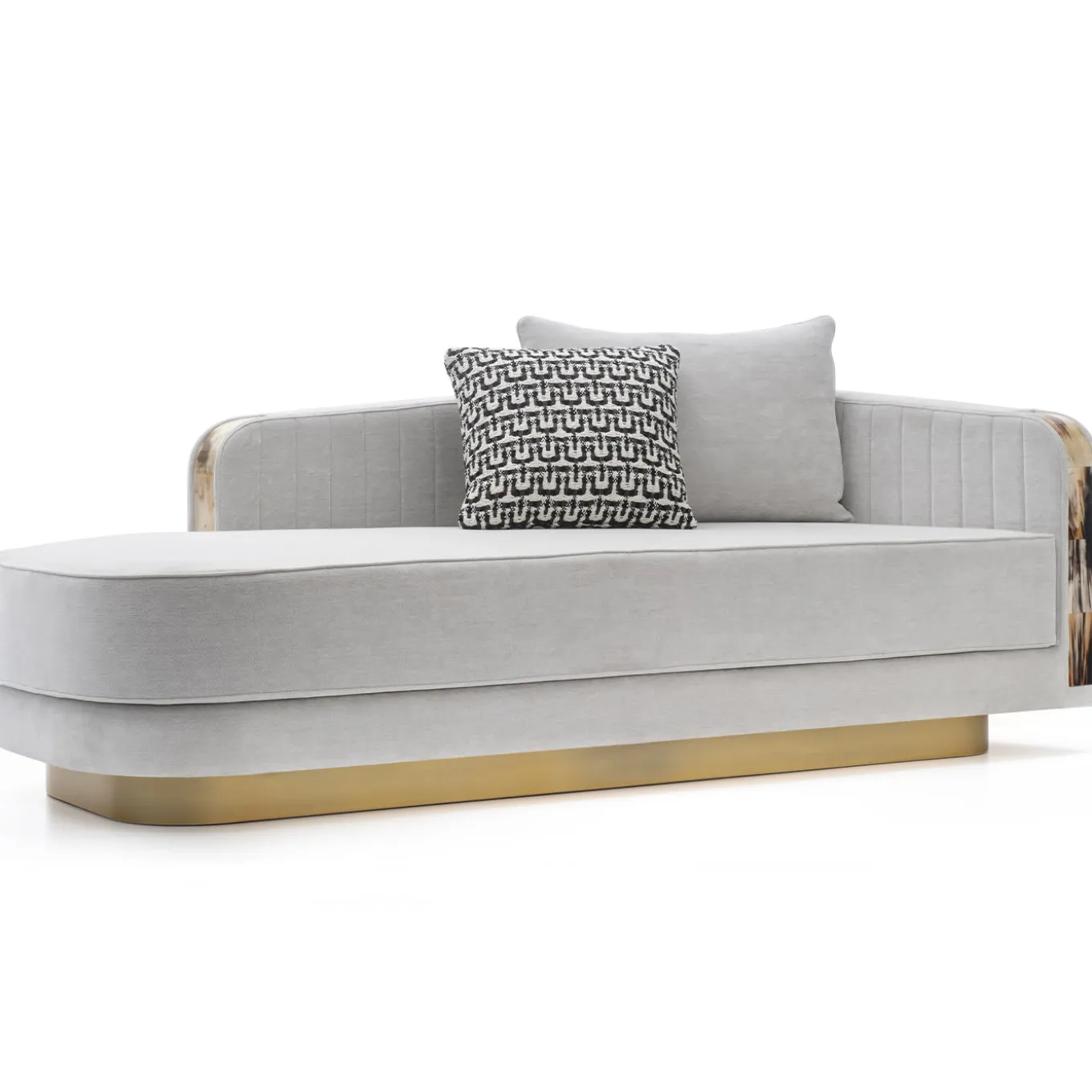 L’eccezionale design di Filippo Dini conferisce alla Chaise Longue Afrodite un’eleganza insuperabile. La seduta presenta braccioli curvi con inserti in corno e una base in legno con effetto ottone satinato, schienale e braccioli a coste e un’imbottitura di qualità in poliuretano espanso, piuma d’oca e memory foam. Le misure sono 200 x 95 x H 86 cm.