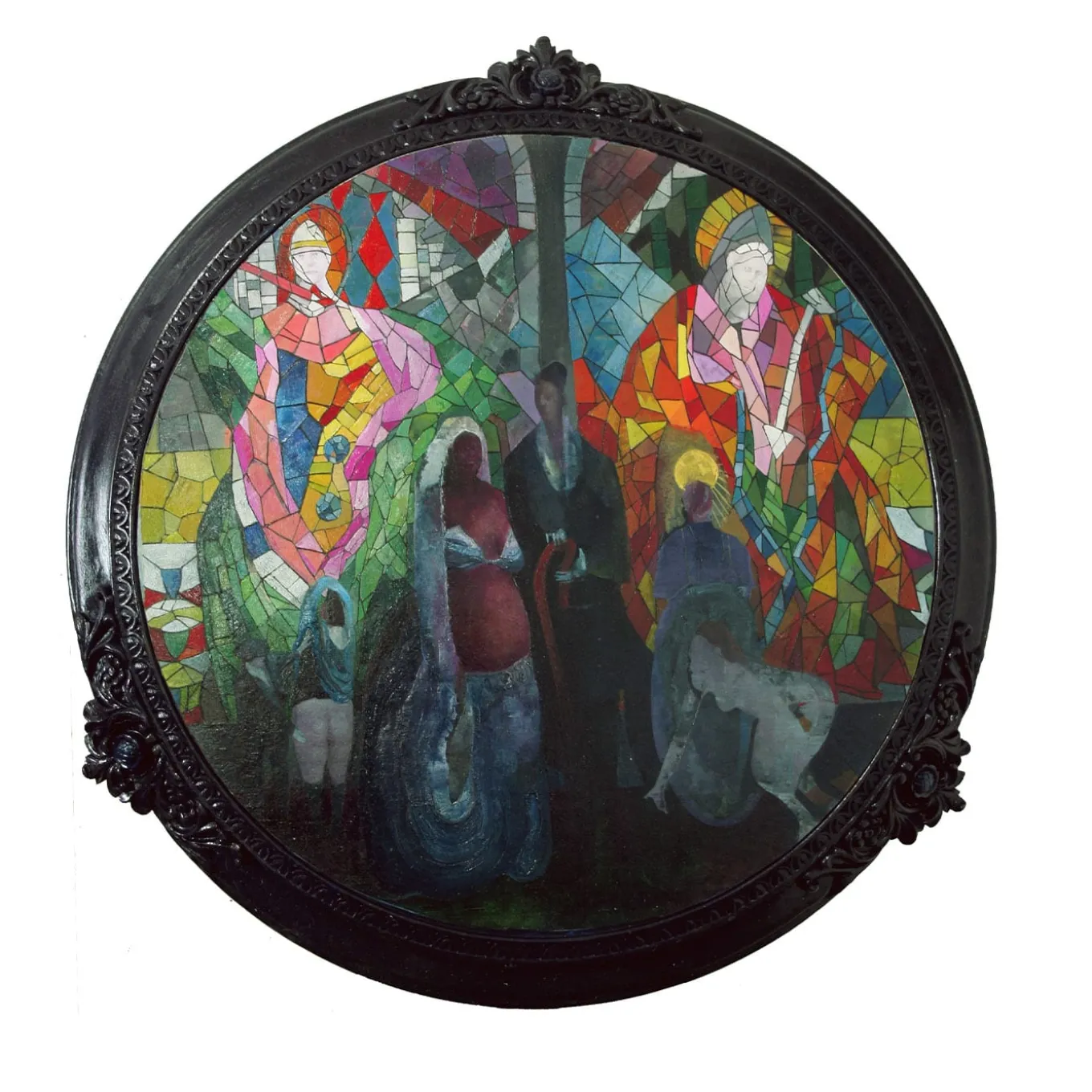 L’artista contemporanea Chiara Sorgato colpisce per il suo singolare stile surrealista e per i titoli iconici che dà alle sue opere. Il quadro, che prende il nome dal significato italiano di “Che ritratto di famiglia”, è una rappresentazione ironica dei ruoli di genere nella famiglia tradizionale stereotipata. Realizzato con la tecnica della pittura a olio su cartone vegetale, è racchiuso in una cornice rotonda ornamentale anch’essa dipinta a olio.