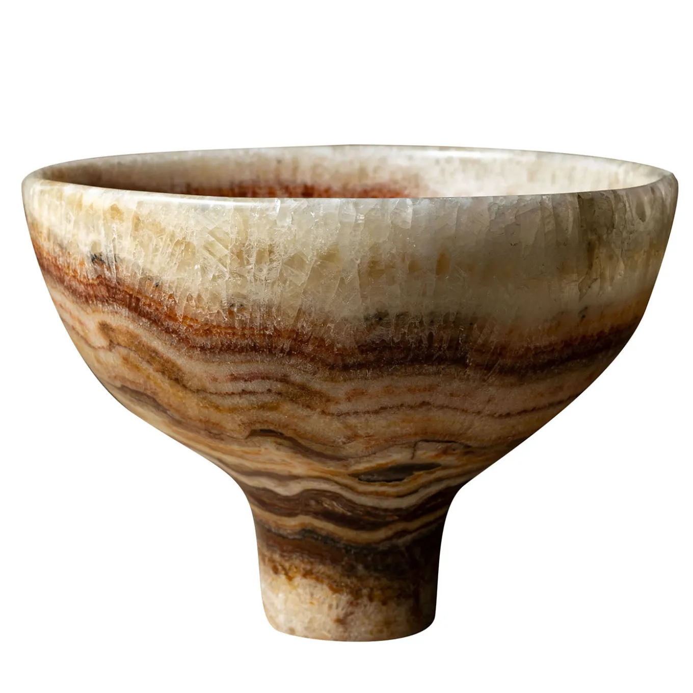 Una ciotola centrotavola decorativa della collezione Sunrise, con un design unico in onice rosso con sfumature più chiare. Le sue distintive varianti di colore creano un effetto visivo sorprendente, rendendolo un oggetto elegante e versatile adatto a diversi ambienti interni. Le sue dimensioni raffinate e la forma scultorea gli permettono di distinguersi come un elegante pezzo d’accento in qualsiasi stanza.