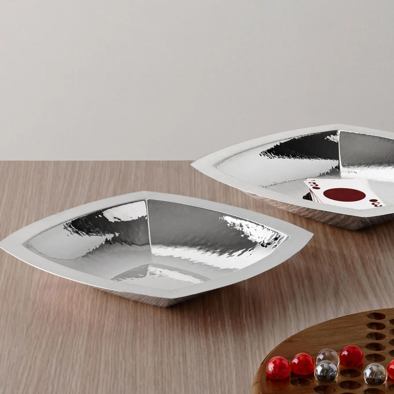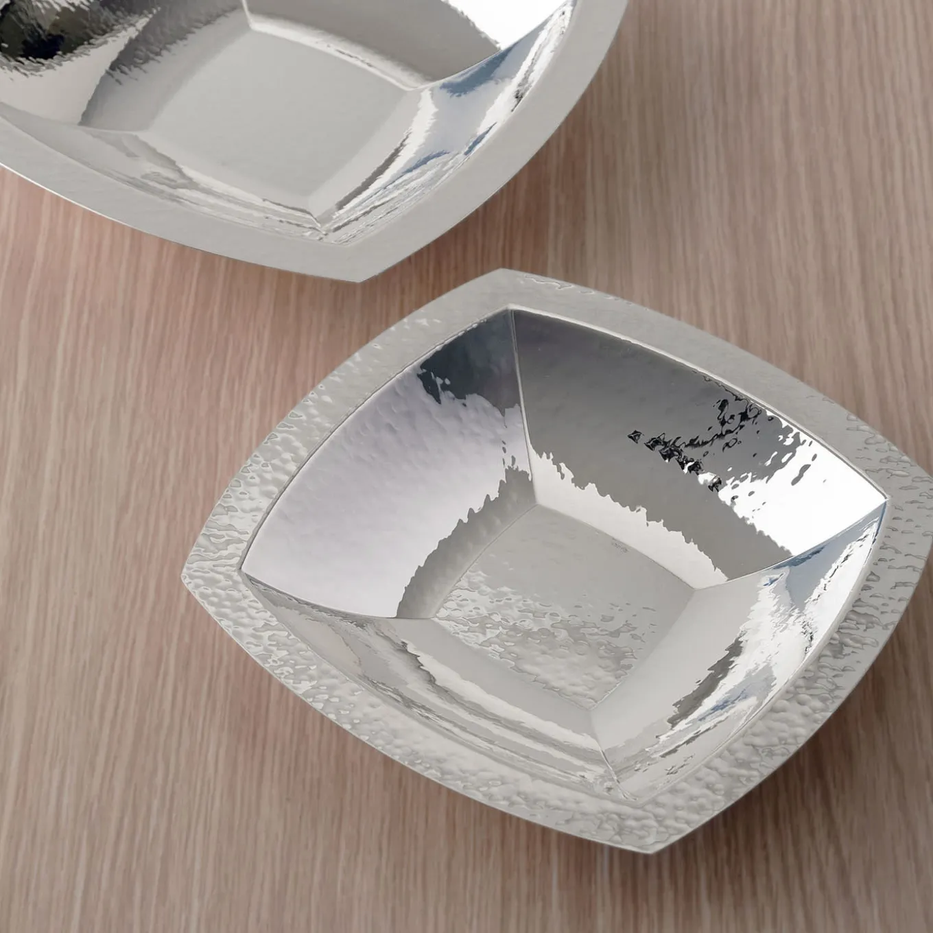 La ciotola Materia Viva è caratterizzata da un’estetica geometrico-organica: fonde armoniosamente la forma di un cerchio con quella di un quadrato e mostra una vibrante texture martellata, realizzata esclusivamente a mano da maestri artigiani. Il risultato è un pezzo dalla geometria morbida, dalla texture ricca e dal design evocativo che si integra naturalmente con qualsiasi stile d’interni. Perfetto come accento raffinato, sia esposto da solo che come parte di un set, per composizioni creative durante le riunioni domestiche. Disponibile in altre dimensioni su richiesta, contattare il Concierge per ulteriori informazioni.