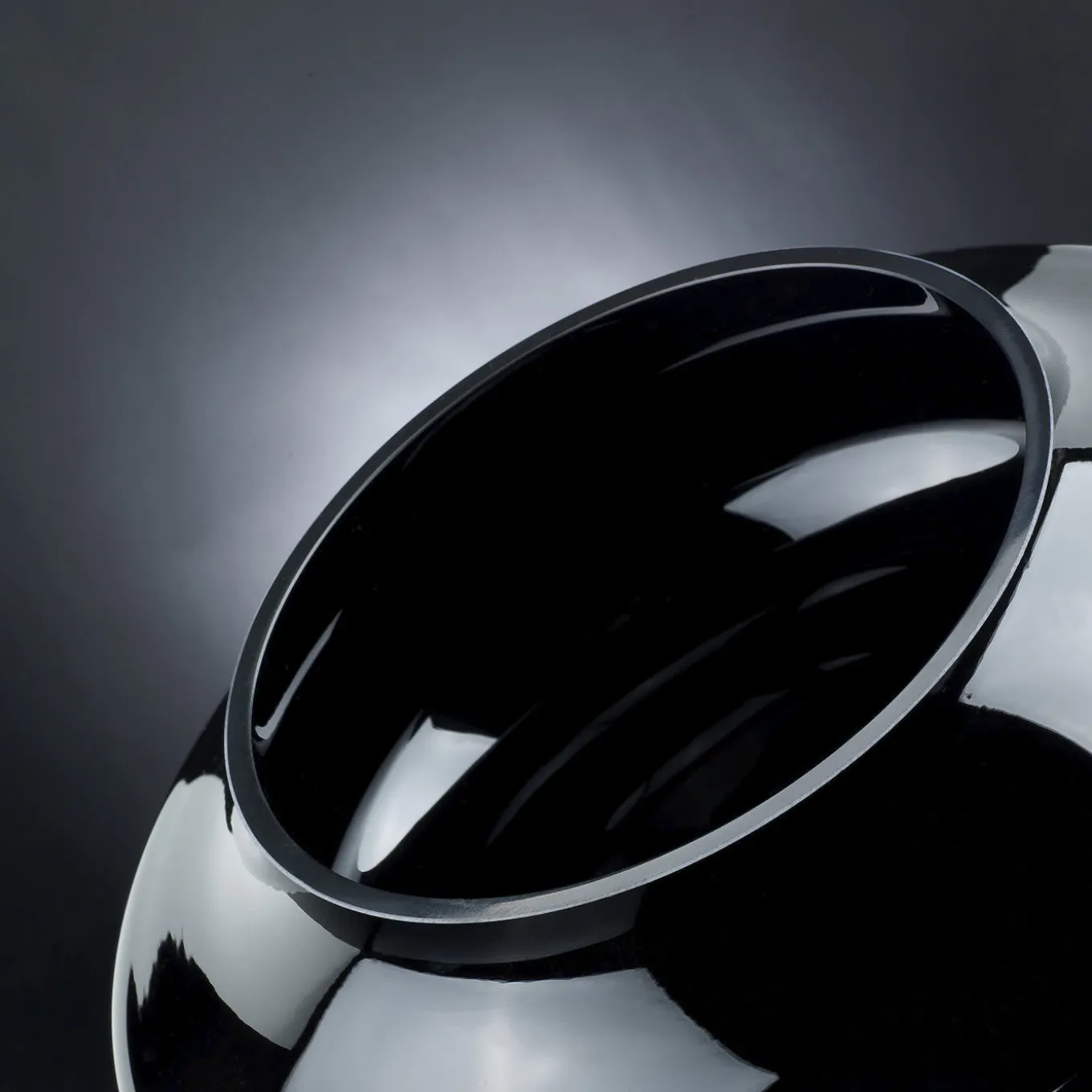 Un pezzo senza tempo di arredamento moderno e funzionale, questa ciotola può essere utilizzata anche come vaso decorativo o centrotavola. Realizzata a mano in vetro con una tonalità nera lucida, le linee pulite ed essenziali che compongono questo pezzo sono segnate da un sinuoso profilo convesso che crea un anello appena sotto la parte superiore.
