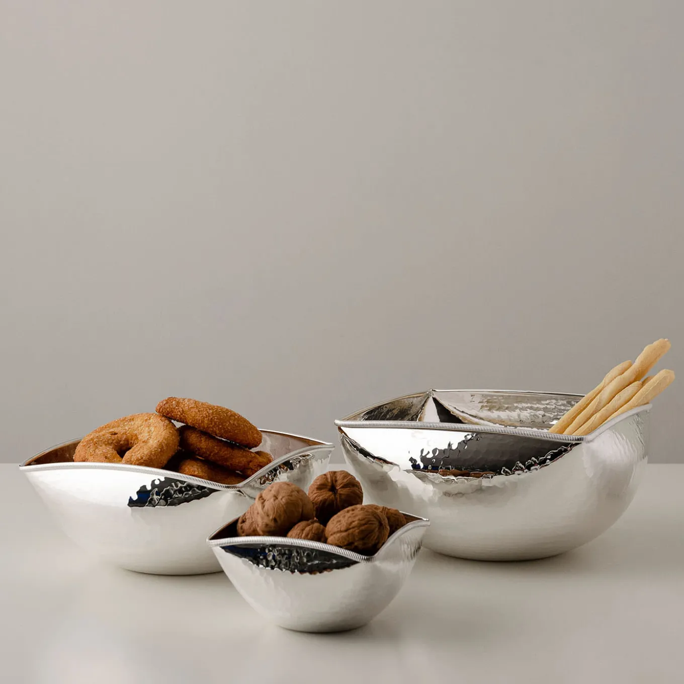 Ciotola Squadrata Rotonda Materia Viva martellata placcata argento