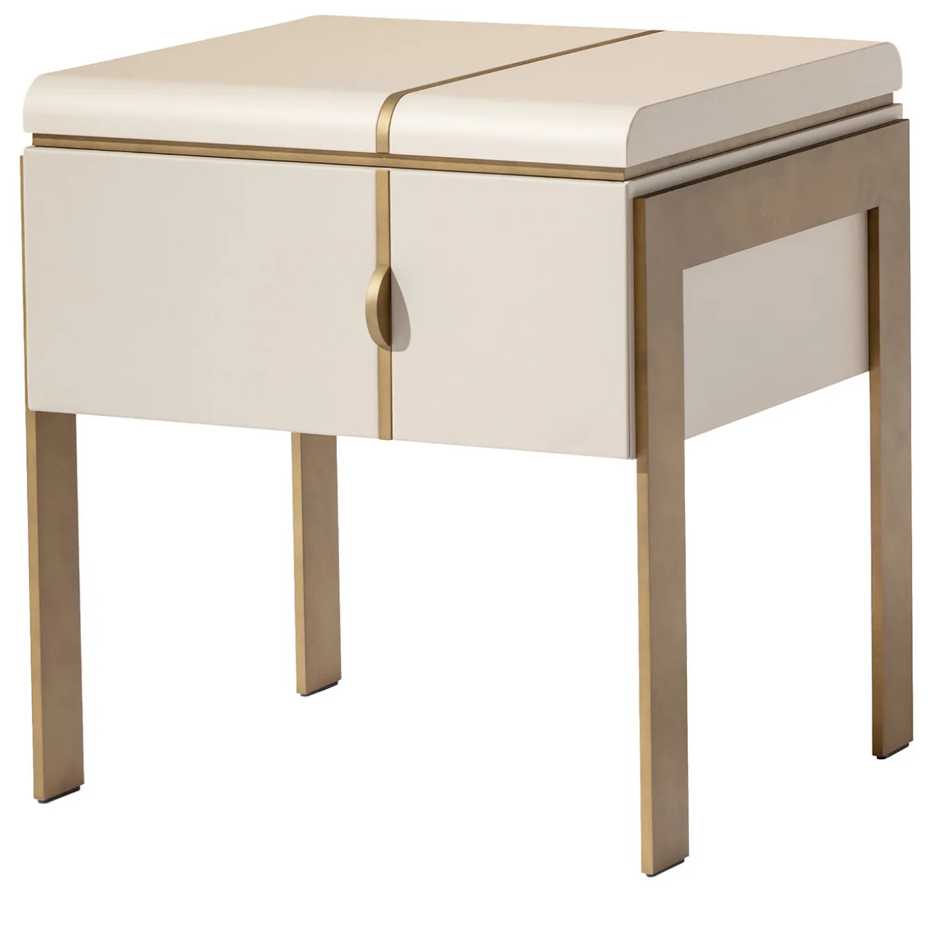 Un design elegante e raffinato è ripreso nelle linee minimaliste che danno forma a questo splendido comodino, parte della collezione di mobili contemporanei Althea. Sostenuto da gambe metalliche a barra piatta, presenta una struttura laccata bianca arricchita da inserti metallici e dotata di un cassetto. Contattare il Concierge per dettagli e opzioni di personalizzazione.