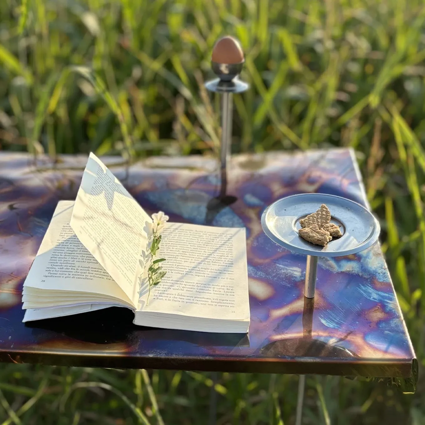 Vi presentiamo la consolle Domenica, un tavolo da colazione unico nel suo genere, perfetto sia per l’interno che per l’esterno. Realizzato in acciaio inossidabile, il suo piano con finitura a specchio è stato modellato e colorato con un cannello ossiacetilenico, creando un effetto vibrante che ricorda una tovaglia colorata. Le gambe in acciaio si ergono come steli per sostenere i vostri oggetti preferiti. Personalizzabile nelle dimensioni, ogni tavolo è un pezzo unico.
