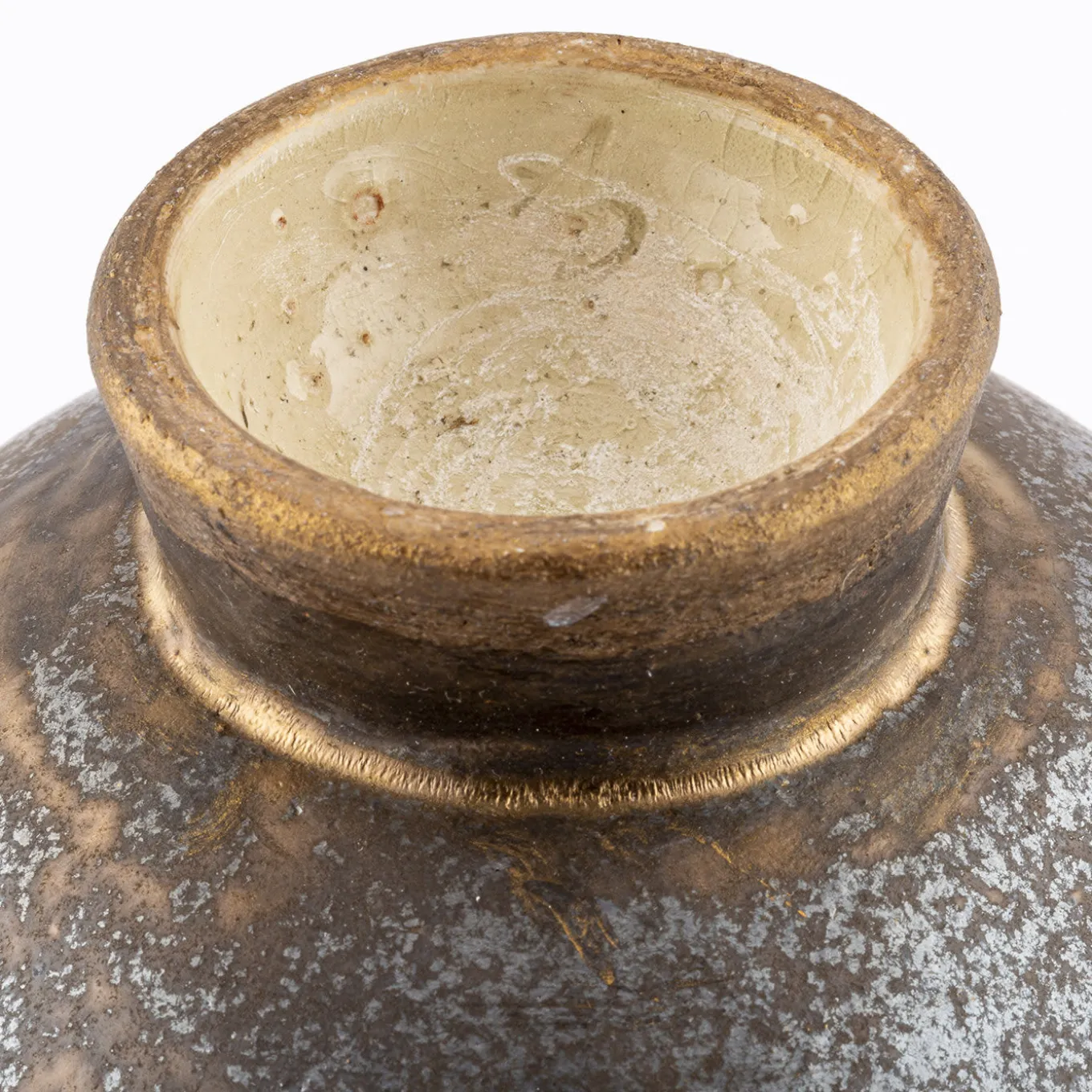 Ricordando un raffinato calice di ispirazione romana, questo splendido contenitore si distingue per l’accento ipnotico e luminoso dello smalto color bronzo. Realizzato a mano in gres, sarà ideale per ospitare composizioni di fiori secchi o freschi esposte sul piano di un tavolo di un ambiente tradizionale o contemporaneo. Il processo di lavorazione meticolosamente artigianale fa sì che non esistano due pezzi uguali. Non adatto all’uso alimentare.