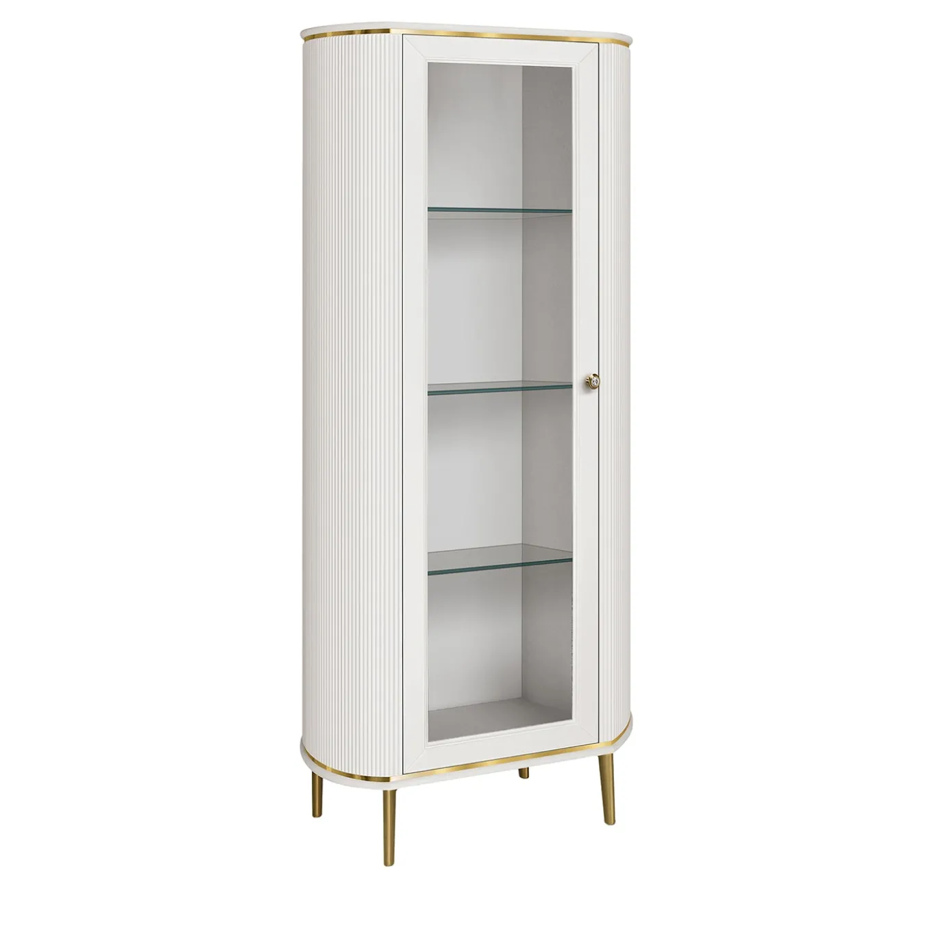 Realizzato con precisione, questo mobile in vetro a 1 anta combina una finitura bianca pulita con accenti metallici dorati che ne elevano il design moderno. L’anta in vetro si apre agevolmente per rivelare un ampio spazio, con ripiani in vetro perfetti per esporre cristalleria, oggetti da collezione o decorazioni. Il suo design elegante, impreziosito dai piedini in metallo dorato, sarà un’aggiunta raffinata a un salotto o a un foyer.