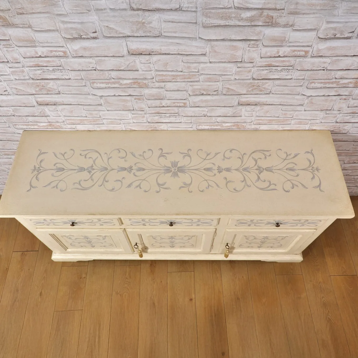Elegante madia con tre porte e tre cassetti, fedelmente riprodotta da un originale modello tirolese italiano della fine del XVIII secolo. Dipinta a mano con motivi barocchi e floreali, la sua raffinata decorazione valorizza interni contemporanei prestigiosi. Opzioni di personalizzazione disponibili per dimensioni, tonalità di colore e temi decorativi, consentendo un’integrazione su misura all’interno di spazi abitativi sofisticati. Contattare il Concierge per ulteriori dettagli.